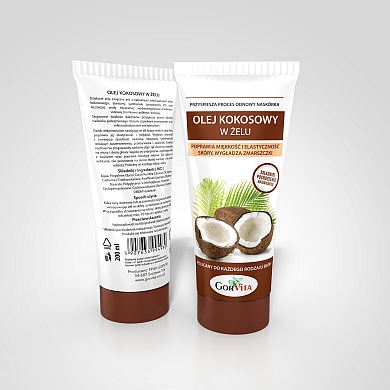 Największe jednak wrażenie zrobił na mnie żel z olejkiem kokosowym. Składa się on z wody mineralnej i oleju kokosowego. Doskonale rozprowadza się po skórze, jest delikatny i szybko się wchłania. Można zaobserwować poprawę elastyczności skóry i jej miękkość. Bardzo ładnie i delikatnie pachnie kokosem, nie pozostawia na skórze tłustej warstwy. Jestem bardzo zadowolona z oleju kokosowego w żelu i systematycznie go stosuję. Moja skóra zdecydowanie jest gładsza, a miejsca, w których miałam wysuszoną skórę wygładziły się. Polecam go do pielęgnacji skóry i myślę, że powinien on spełniać oczekiwania wielu pań.