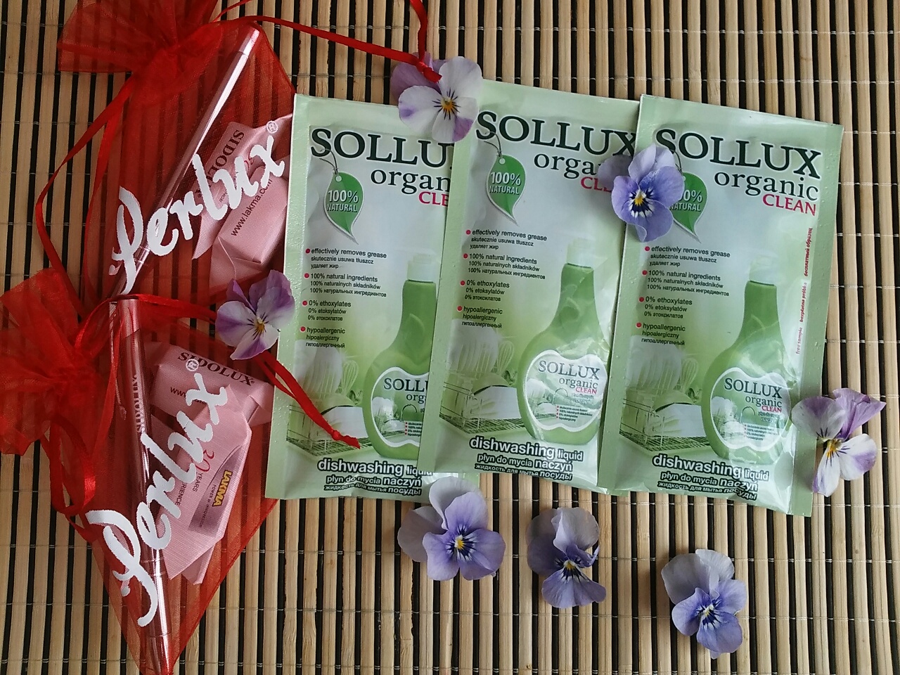 5. Produkt do mycia naczyń Sollux Organic Clean nie posiada ani grama etoksylatów, jest bezpieczny, naturalny i przyjemnie pachnie. Jest bardzo skuteczny, domywa nawet zaschnięte zabrudzenia. Skutecznie usuwa tłuszcz. Dzięki zawartym aktywnym składnikom pochodzenia naturalnego jest hipoalergiczny i bezpieczny dla skóry i rąk. Bez obaw możemy rzucić się w wir pracy i z przyjemnością myć naczynia. Dodatkowo mocno się pieni i po myciu naczyń pozostaje przyjemny, naturalny zapach trawy cytrynowej. Łatwo się spłukuje i nie pozostawia smug. Dla mnie jest doskonały, a co ważne mali pomocnicy również mogą go używać.