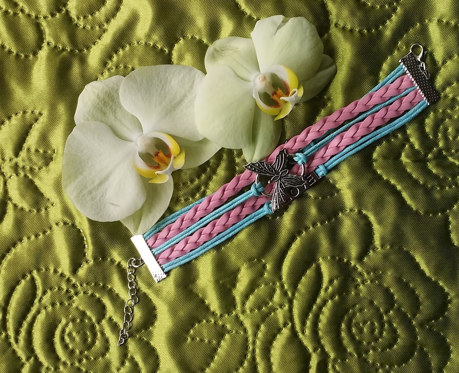 Zacznijmy może od bransoletek. Pierwsza z nich ma piękne pastelowe kolory. Nadaje się raczej dla nastolatki. Znajdują się na niej postać motyla, kotwica i napis LOVE. Można to skojarzyć z piękną i nierozerwalną miłością. Bransoletka pięknie wygląda i doskonale pasuje do stylizacji z szortami i T-shirtem, bądź z letnią sukienką. Jest pleciona, ale posiada typowe zapięcie.