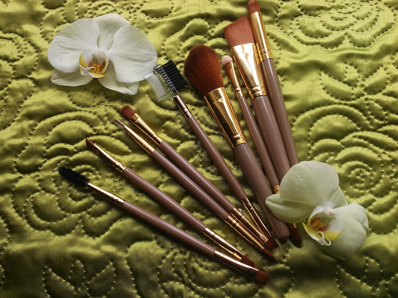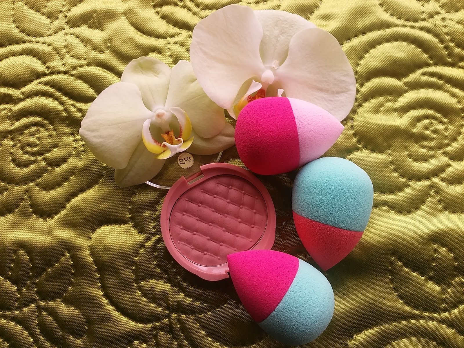 Zamówiłam sobie też pędzelki, ponieważ mam trochę kosmetyków, a nie mam, czym się malować. Pędzelki prezentują się pięknie. Bardzo łatwo i wygodnie się nimi maluje. W zestawie znajdują się pędzelki o różnej długości i zastosowaniu. Są z dobrej jakości włosia. Uważam je za bardzo udany zakup, podobnie zresztą jak blendery. W paczuszce otrzymałam 3 w różnych kolorach. Łatwo się nimi nakłada podkład i tak samo łatwo się je czyści. Nie rozwarstwiają się i nie kruszą. Jestem pozytywnie zaskoczona. Zestaw do make up gotowy.