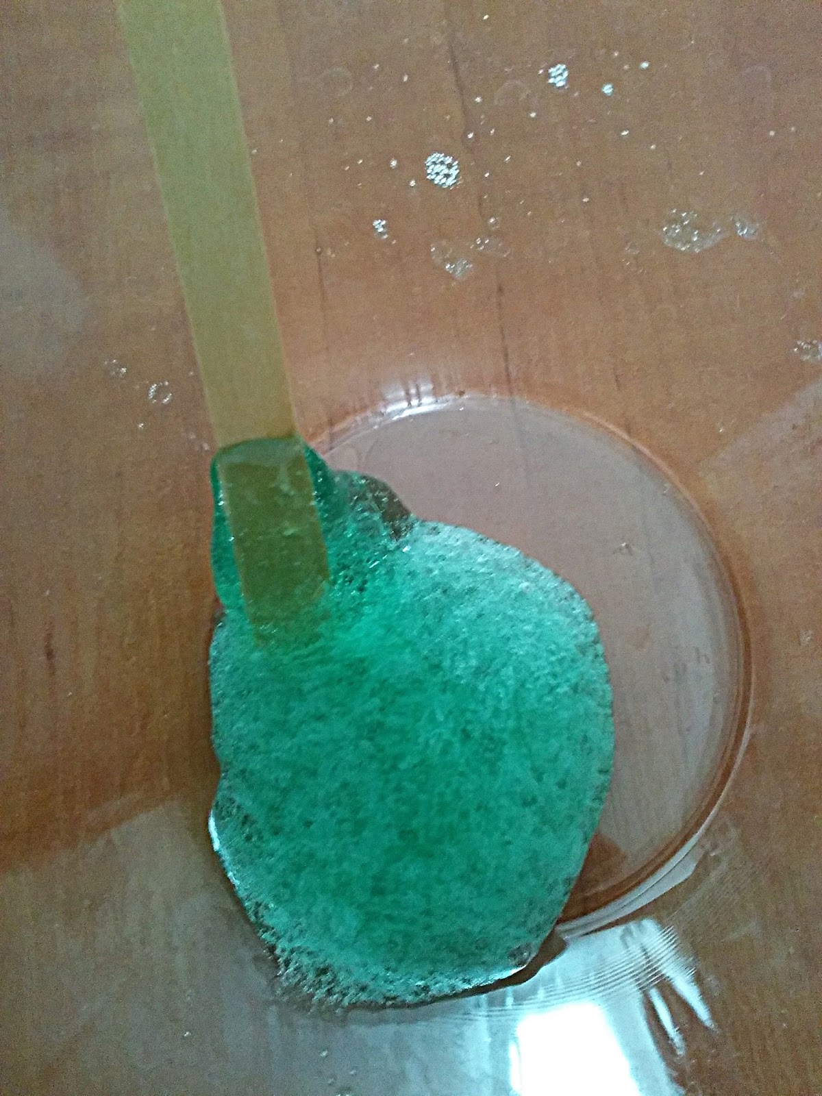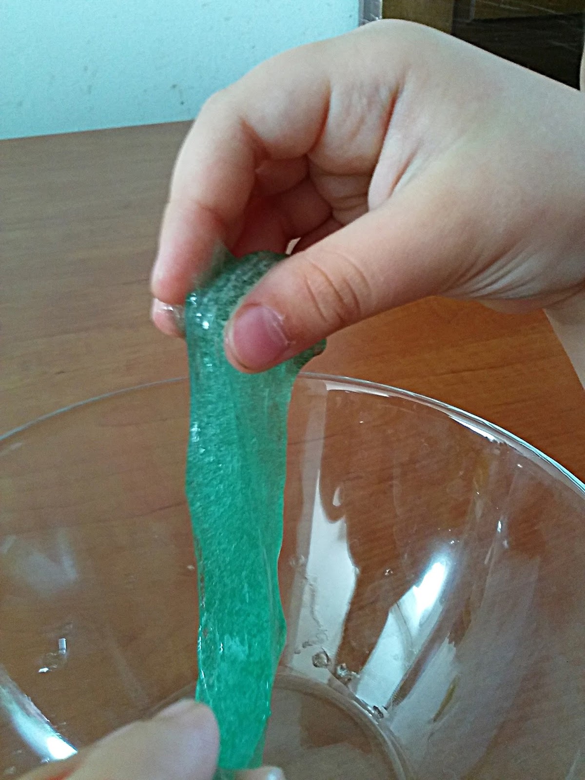 Podczas doświadczenia powstaje FUN Go. Pewnie za wiele Wam to nie mówi, ale po kolei. Na początku wlewamy do miski zieloną substancję z fiolki. Następnie należy wstrząsnąć małą fiolką z substancją sieciującą i wlać jej zawartość do miski. Potem należy mieszać całość przez 2-3 minuty, aż płyn całkowicie zmieni się w płynną, żelową substancję. FUN Go nabierze właściwości po 30 minutach, choć od razu można zauważyć pierwsze cechy. W efekcie połączenia i wymieszania tych dwóch cieczy powstaje nam FUN Go, czyli „glutowata”, gęsta substancja. Jak widać wykonanie eksperymentu jest bardzo proste. Dzięki niemu mamy możliwość obserwacji zmiany stanów skupienia, poznania i zobaczenia, a także dotknięcia cieczy nienewtonowskiej.