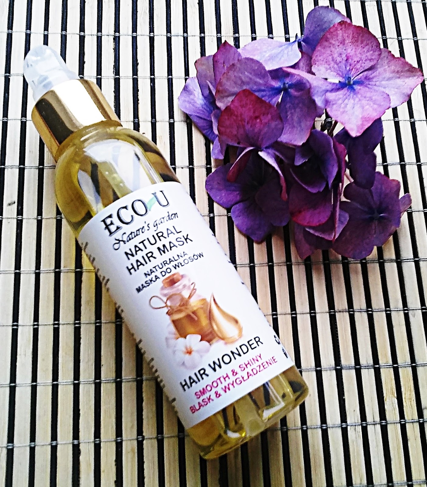 Maska znajduje się w poręcznej, plastikowej buteleczce z dozownikiem, o pojemności 100ml. Dzięki specjalnej końcówce możemy w łatwy, wygodny i szybki sposób ją zaaplikować prosto na włosy. W ten sposób używanie produktu jest bardzo ekonomiczne. Ja mam średniej długości włosy, więc pomimo ich pielęgnacji dwa razy w tygodniu, wystarczyła mi ona na półtora miesiąca. Szata graficzna opakowania jest zdecydowanie odmienna, w porównaniu do wcześniej prezentowanych kosmetyków. Jest biała z obrazkiem oleju i kwiatów, a na górze widnieje napis ECO U. Konsystencja maski jest bardzo leista, więc podczas aplikacji trzeba uważać, aby nie wycisnąć jej za dużo i przy okazji nie wybrudzić wszystkiego dookoła. Jej zapach jest bardzo intensywny. Wyczuwalne są olejki, czyli składniki, z których powstała.