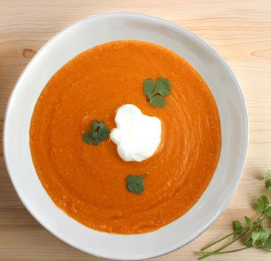 Obierz cebulę i pokrój w kostkę. Czosnek przeciśnij przez praskę. Cebulę podsmaż na oliwie, dodaj czosnek, przyprawy i wymieszaj. Dodaj soczewicę, pomidory i wodę. Zupa powinna gotować się około 20 minut, jednak jeśli chcesz przygotować zupę krem, gotuj ją dłużej, do momentu aż soczewica zacznie się rozpadać. Dopraw mlekiem kokosowym i przyprawami. Podawaj z kleksem jogurtu naturalnego albo mleka kokosowego.