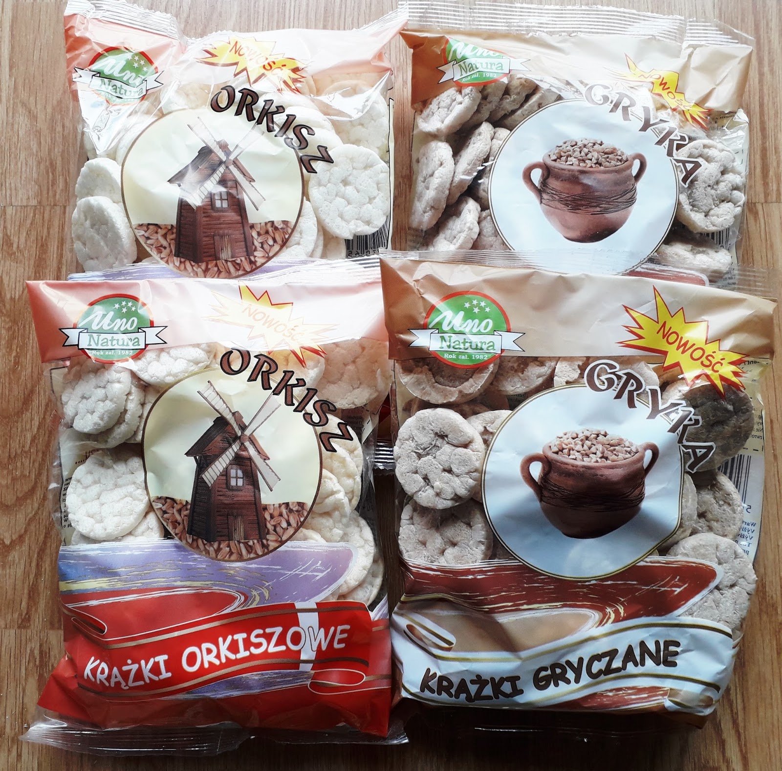 Gryka nie przypadła Wam do gustu? Żaden problem. Uno Natura w swojej bardzo szerokiej ofercie posiada także książki orkiszowe. Do ich produkcji wykorzystano mąkę orkiszową i sól. Orkisz to gatunek zboża znany od starożytności, a jego cudowne właściwości są odkrywane obecnie na nowo. Produkty orkiszowe poprawiają trawienie ze względu na duże ilości błonnika. Orkisz jest także doskonałym źródłem witamin z grupy B, PP oraz składników mineralnych: żelaza, potasu, wapnia i cynku, zawiera znaczne ilości kwasu krzemowego, który jest ważny dla skóry, włosów i paznokci. Poza tym rozjaśnia umysł, wzmacniając aktywność mózgu i koncentrację. Orkisz zawiera cenne substancje, które chronią dzieci przed infekcjami, wzmacniają układ odpornościowy. W związku z czym staje się ważny dla wszystkich, którzy dbają o własne zdrowie i zdrowie najbliższych. Krążki gryczane również są dość szerokie, jednak ich smak jest dużo delikatniejszy od gryczanych. Można do nich dopasować więcej dodatków i skomponować, ciekawe, kolorowe mini kanapeczki.