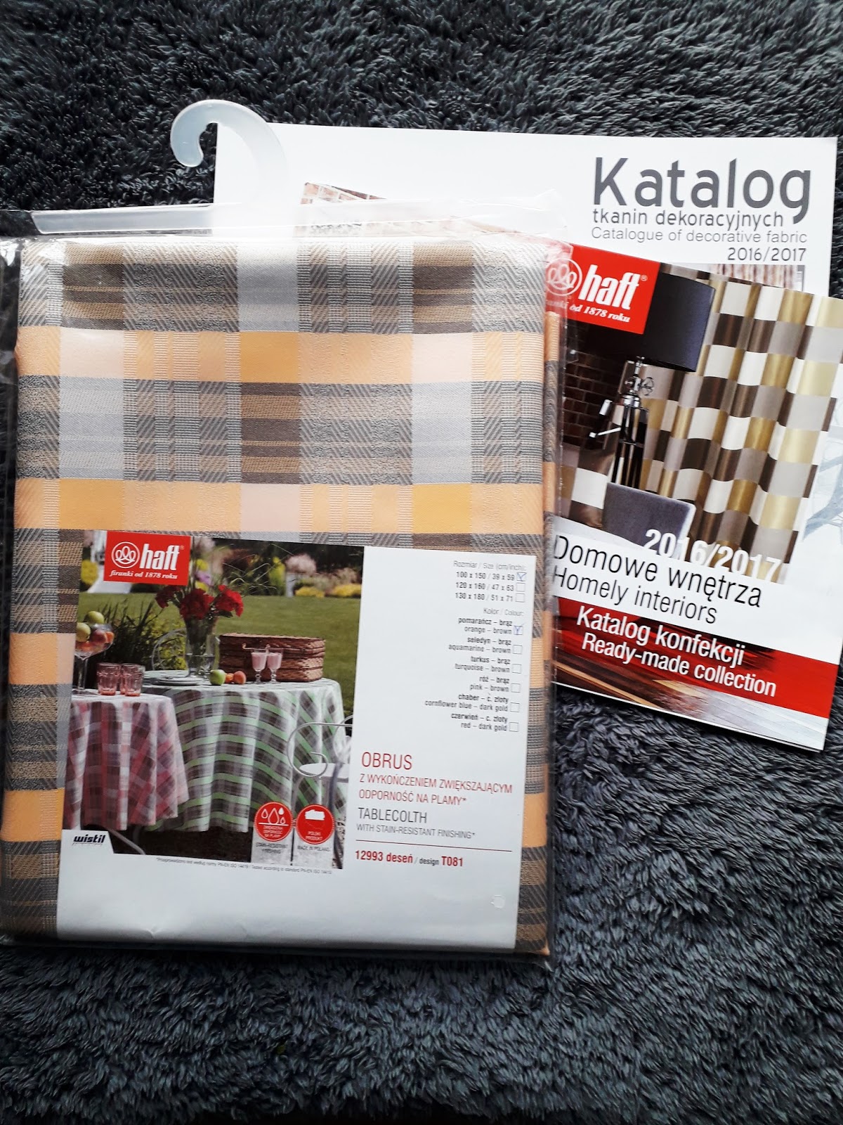 Oprócz firanek otrzymałam także obrus w kratkę. Posiada on specjalne wykończenie zwiększające odporność na plamy. Obrus prezentuje się naprawdę pięknie. Doskonały na każdą okazję. Wykonany z plamoodpornego materiału. Bardzo łatwo się go pierze i szybko schnie. Jest doskonały na Bożonarodzeniowy stół. Nawet, gdy zaleje się go barszczem nic si nie stanie i łatwo spierze. Dla mnie doskonały.