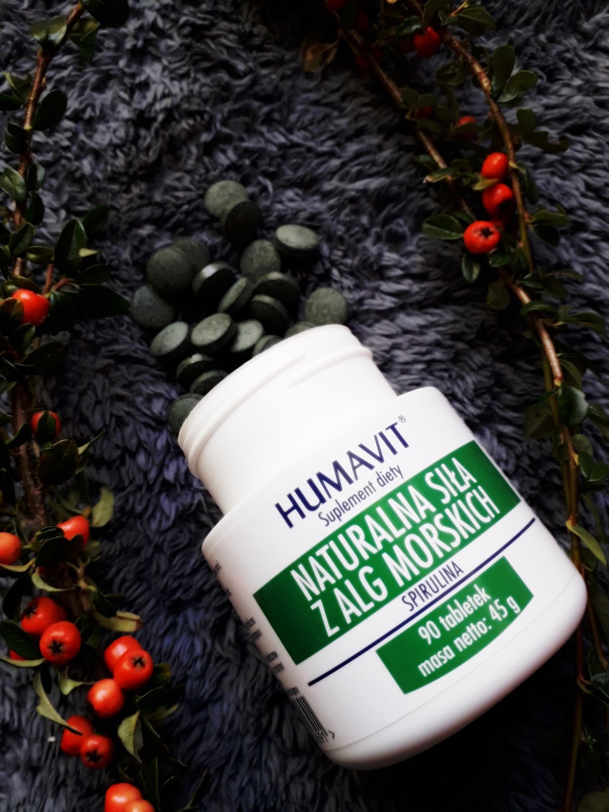 Innym produktem tej firmy, który wesprze nas w walce ze zbędnymi kilogramami, jest HUMAVIT Naturalna siła z alg morskich. Nie wiem, czy słyszeliście już o spirulinie, ale to właśnie ona jest głównym składnikiem tego suplementu i to dzięki niej łatwiej jest nam zgubić kilka kilogramów. Produkt zawiera sproszkowane, niebieskozielone mikroalgi morskie sinic z gatunku Spirulina Platensis. Zmniejsza wartość energetyczną spożytego pokarmu. Obniża poziom przyswajania skrobi i pobudza perystaltykę jelit. Uzupełnia aminokwasy dla uzyskania beztłuszczowej masy mięśniowej w niskobiałkowych dietach, stosowanych w nadwadze. Zalecana podczas odchudzania dla utrzymania tkanki mięśniowej. Zwiększa siłę mięśni i witalność. Pomaga w razie zmęczenia. Opakowanie zawierające 90 tabletek jest do kupienia w cenie 20zł na stronie producenta. Zalecane jest spożycie trzech tabletek w ciągu dnia. Efekty regularnego stosowania tego suplementu, w połączeniu z ruchem i dietą, widoczne są już po kilku dniach. Oprócz tego ogólne samopoczucie jest dużo lepsze. Nie czuję zmęczenia, ani znużenia, jestem pełna sił i chęci do pracy. Jedynym, aczkolwiek uciążliwym minusem, jest zapach tych tabletek. Już po otwarciu opakowania, czuć bardzo intensywny zapach glonów, który może stanowić utrudnienie w regularnej kuracji. Mimo to jestem z niego bardzo zadowolona i już szykuję się na kolejne zamówienie. Tym bardziej, że efekty są i to całkiem niezłe.