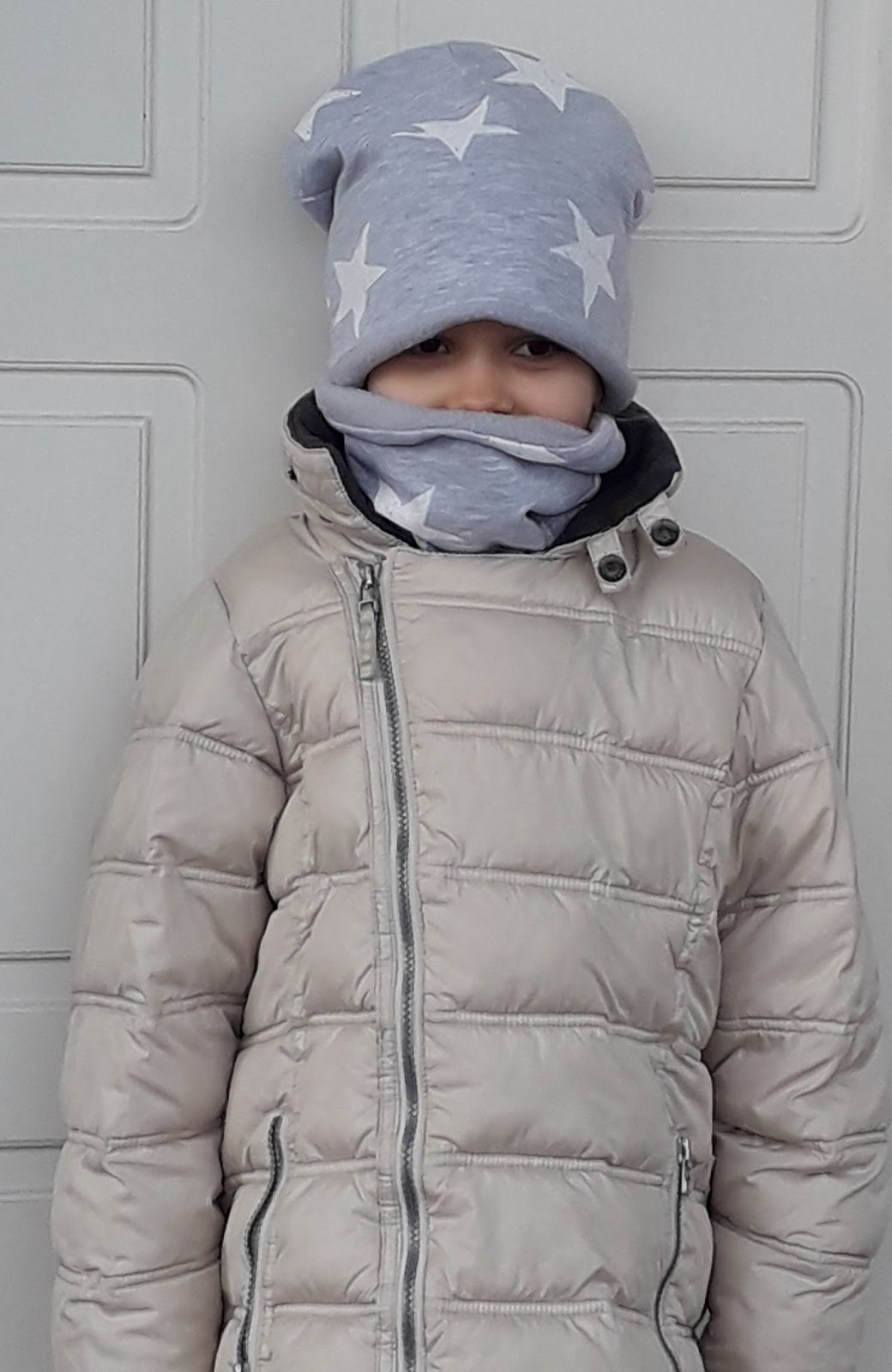 Pamiętam z dzieciństwa, że gdy przychodziła zima, wyczekiwałam, kiedy będę mogła wyjść i się pobawić. Niestety, wielkie czapki i szaliki, często niewygodne, uniemożliwiały zabawę. Oczywiście, jak tylko wyszłam krok za drzwi, czapka lądowała w kieszeni, a po pewnym czasie, cóż by innego, byłam chora. Hani chciałam czegoś takiego oszczędzić. Dlatego postanowiłam poszukać innego rozwiązania w Internecie i udało mi się. Znalazłam idealne rozwiązanie. Na facebooku bardzo zdolna mama dwóch chłopców szyje ubrania, bluzeczki, sukieneczki, bluzy, spodenki i piękne, ciepłe komplety – czapka plus komin. Bez wahania zamówiłam jeden taki zestaw. Kontakt jest bardzo miły, a przesyłka dociera błyskawicznie. Do wyboru jest bardzo wiele wzorów, my wybraliśmy gwiazdki. W zależności od tego, jaki wkład wybierzemy, komplet może być jesienny lub zimowy. Czapka wykonana jest z miłej w dotyku dresówki, ocieplona specjalnym materiałem. Komplecik jest pięknie i dokładnie wykonany. Widać, że w powstanie takiego cuda, włożono wiele pracy. Komplet komin z czapką jest wygodny, Hania chętnie go nosi i świetnie w nim wygląda. Pasuje do wszystkiego i na pewno posłuży przez niejedną zimę. Zadowolenie i radość dziecka jest bezcenna. Może oddać się beztroskiej zabawie na zewnątrz.