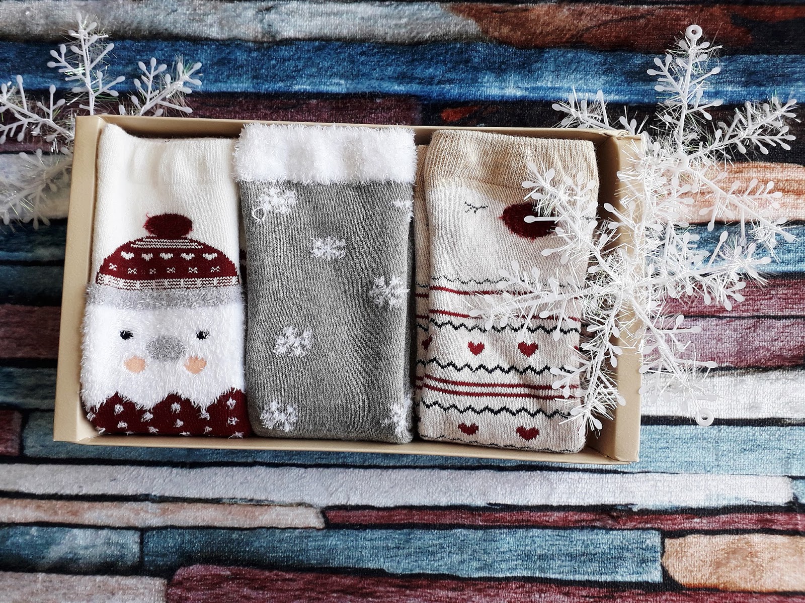 Nie mogło zabraknąć drobnego, świątecznego akcentu. Dla Hanusi kupiłam ciepłe skarpetki na zimowe, mroźne wieczory. Hania w nocy się rozkopuje, więc takie skarpetki zapewniają jej ciepło. W kartoniku znajdowały się 3 pary, każda z inną aplikacją. Są przeurocze. Będą z Hanią w każdą, zimową noc 🙂