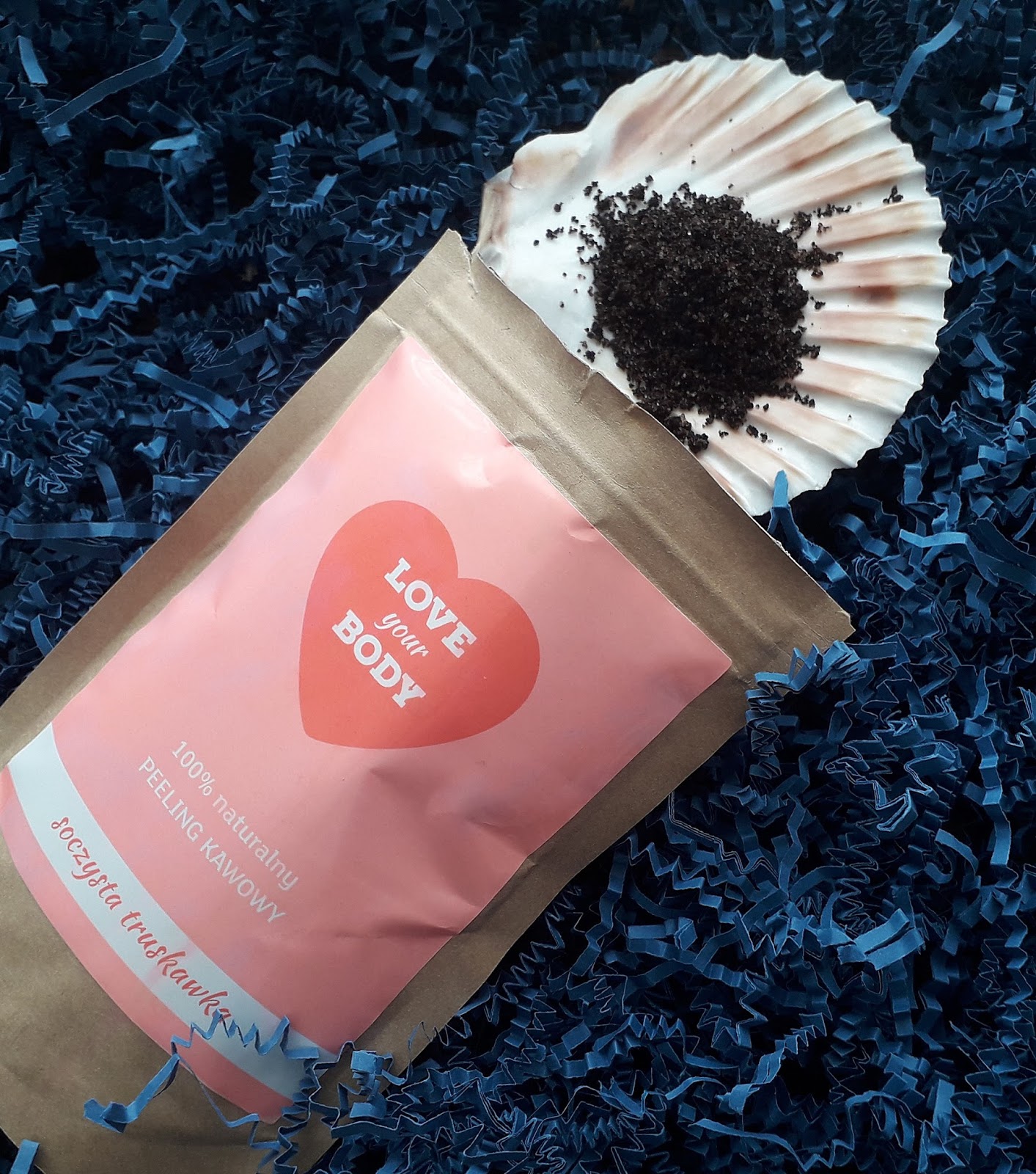 LOVE YOUR BODY to w pełni naturalne peelingi, tworzone w zgodzie z naturą. Do wyboru są trzy wersje: Słodki kokos, Aromatyczna kawa i Soczysta truskawka. Ja wypróbowałam wersję truskawkową.