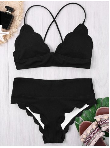 Bikini. Czarne bikini to musi tak wyglądać, jak to Lace up Back Scalloped Bikini. Jeśli jesteś