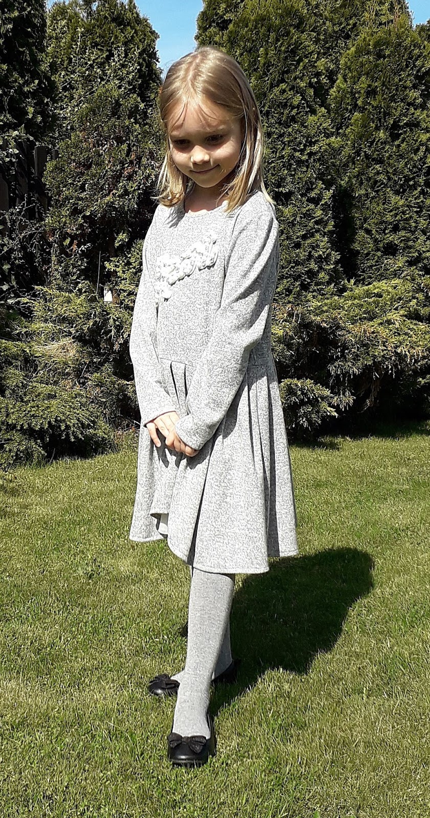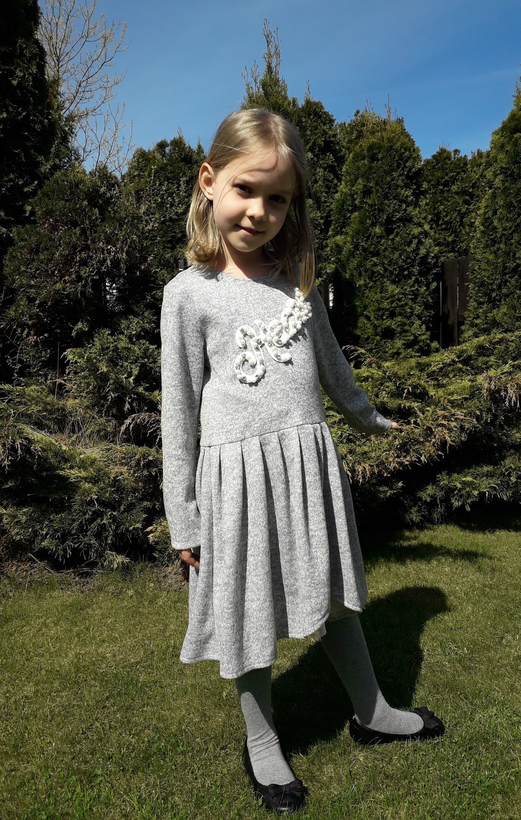 Szara sukienka jest przecudna! Bardzo dziewczęca, ale nieprzesłodzona 🙂