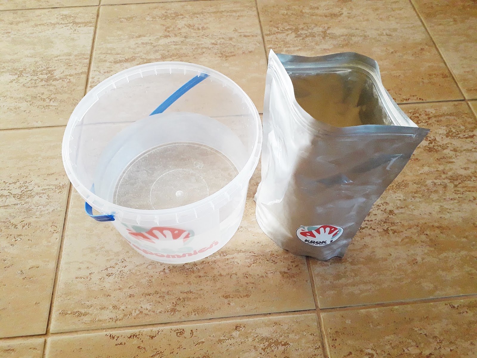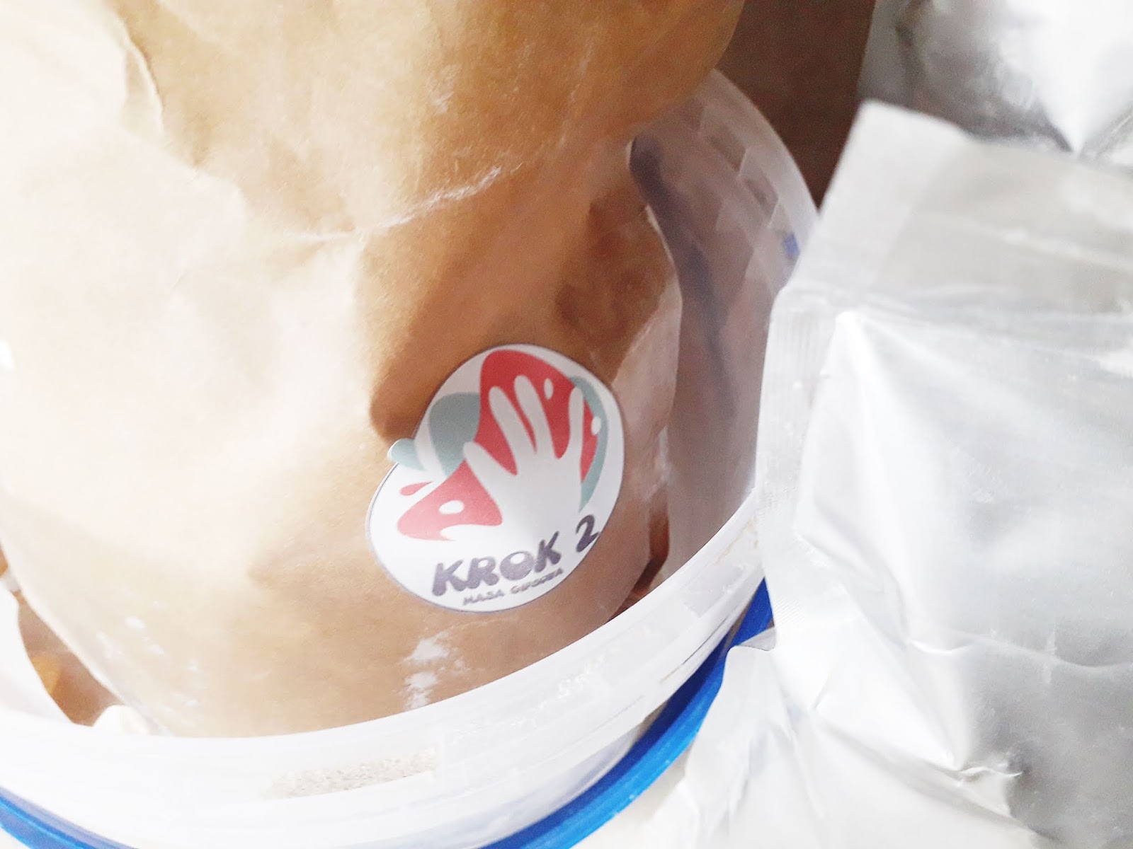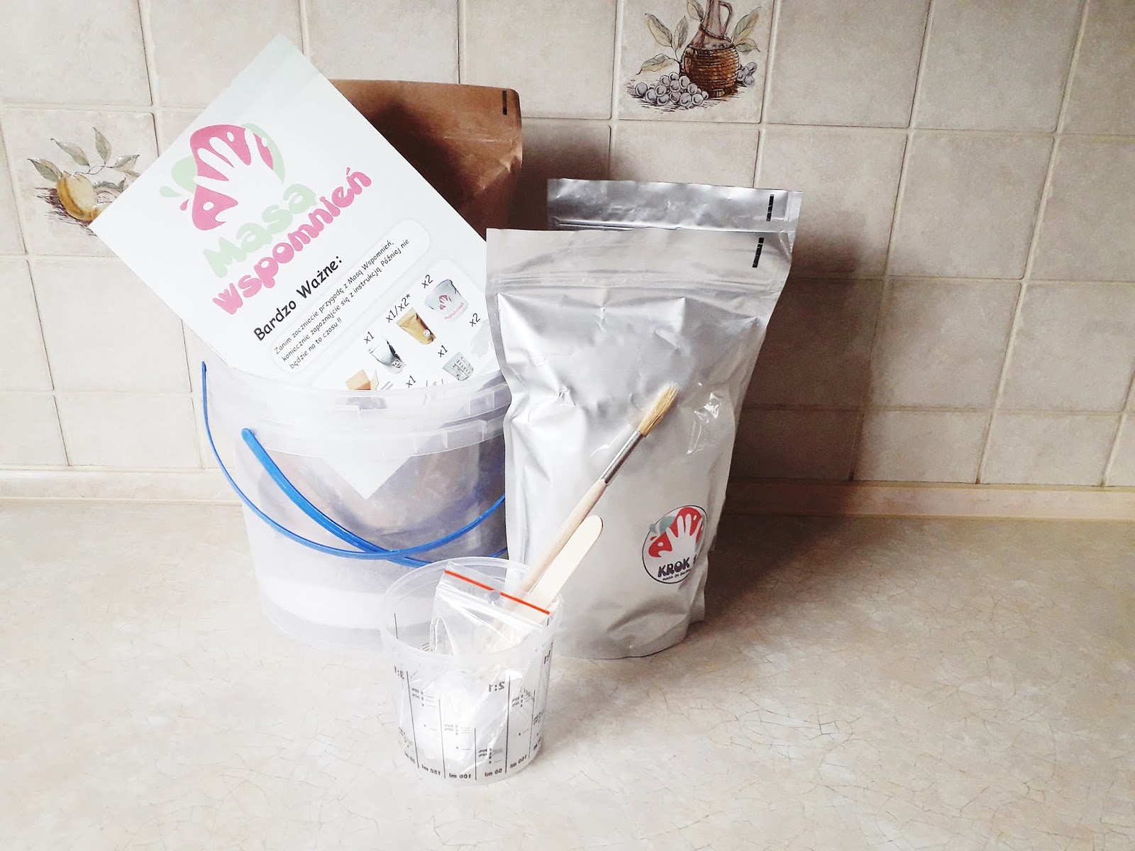 Niestety, po otwarciu kartonu zauważyłam, że torebka z zawartością numer 2 jest przerwana, a miarka popękana. Mimo to poradziliśmy sobie w inny sposób, choć trochę się przy tym nabałaganiło. Na szczęście teraz opakowania na masę gipsową zostały zmienione na aluminiowe i nie ma już ryzyka, że opakowanie z masą w transporcie się uszkodzi.