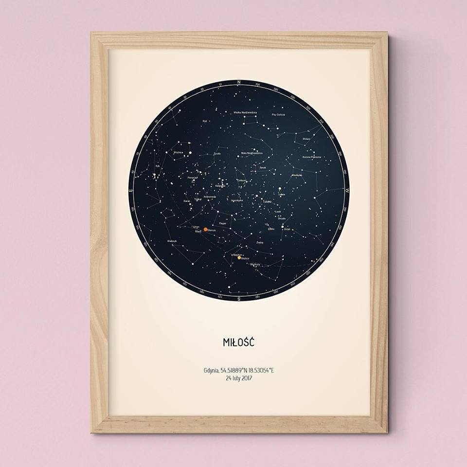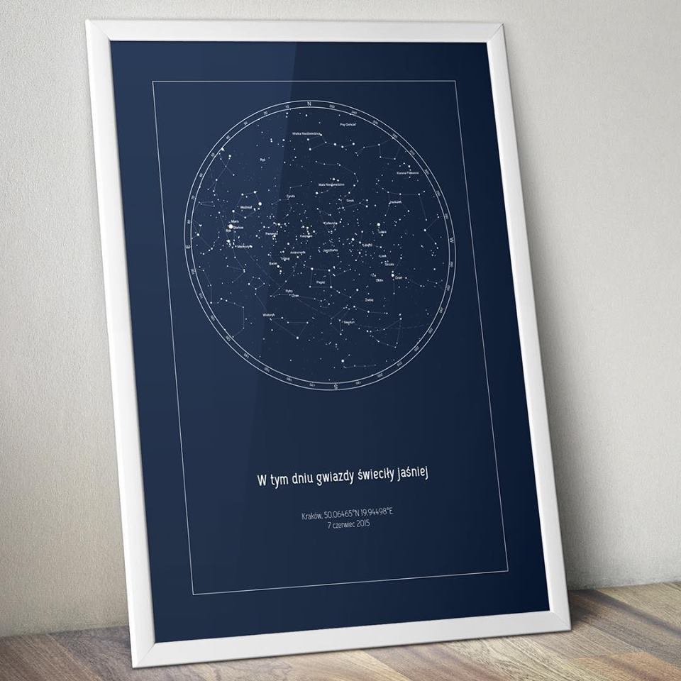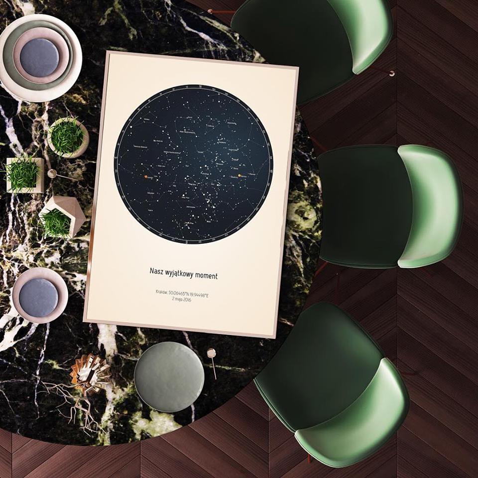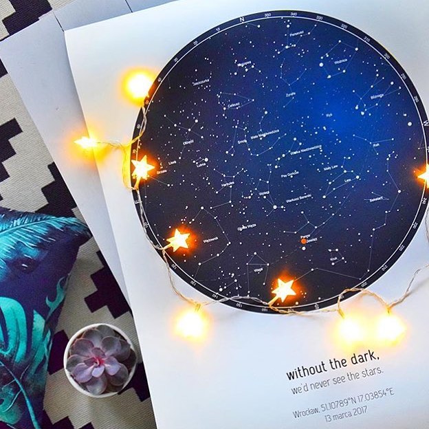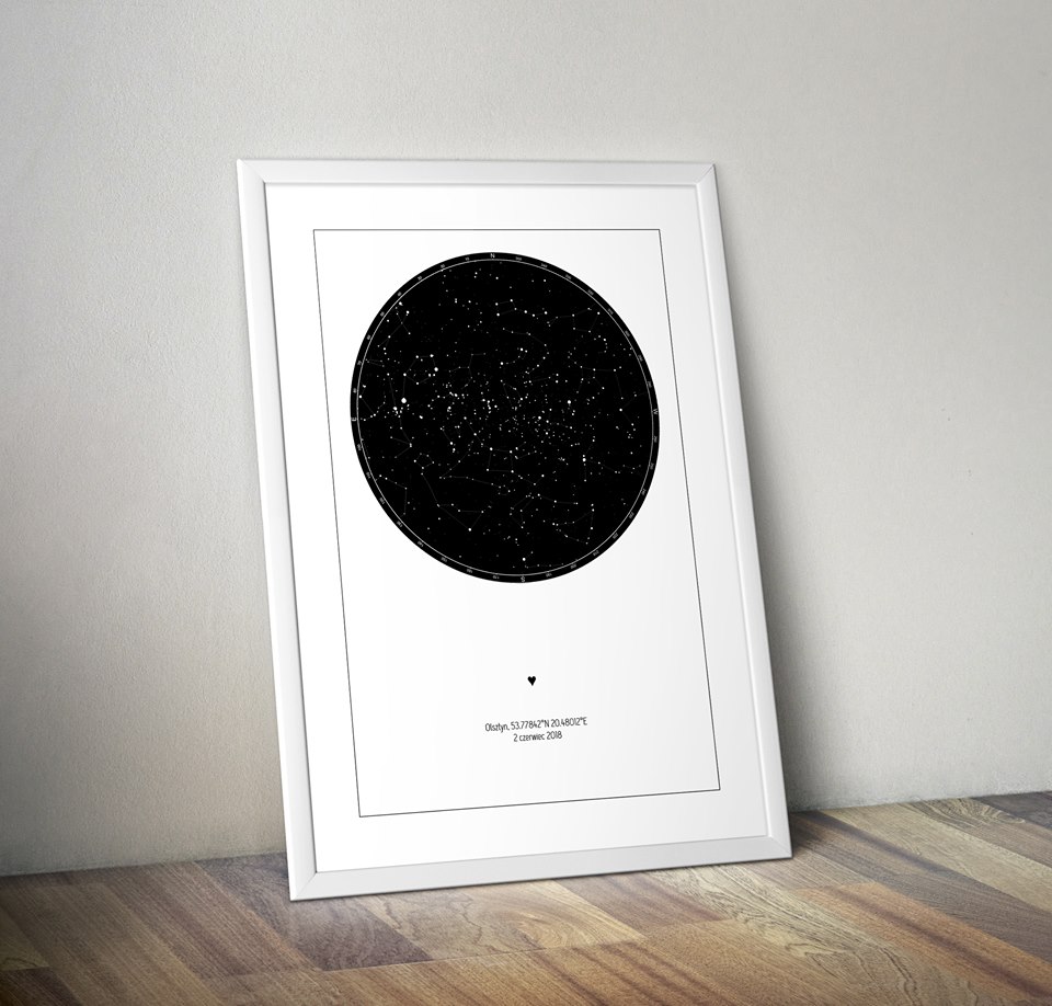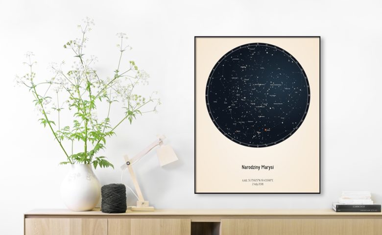 Ostatnią, lecz według mnie najbardziej oryginalną propozycją, jest plakat z personalizowaną mapą nieba od Strellas. Na plakacie można umieścić dowolne wydarzenie wraz z dokładną datą i niebem, jakie wtedy było. Taka pamiątka pozostanie na długie lata. Każdy taki obraz jest indywidualnie projektowany. Stanowi doskonałą dekorację pokoju. W oryginalny sposób można zachować wspomnienia. Na dzień taty można wręczyć mapę nieba, na przykład z dnia urodzin. Na pewno taki prezent spodoba się każdemu 😉
