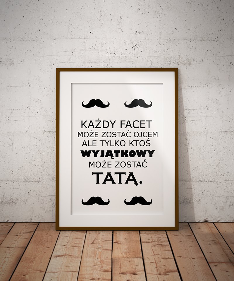 Myślę, że każdy mężczyzna lubi być chwalony. Dlatego doskonałym prezentem na tą okazję będzie piękna ramka z napisem „KAŻDY FACET MOŻE ZOSTAĆ OJCEM, ALE TYLKO KTOŚ WYJĄTKOWY MOŻE ZOSTAĆ TATĄ” od Kornelia Mosiądz Personalizowane Plakaty. Na stronie można znaleźć też inne plakaty i wybrać taki, który najbardziej się spodoba. Tata może zawiesić taką ramkę w salonie i czuć się kimś wyjątkowym. W ten sposób tata zauważa, że jest ważny i doceniany w życiu całej rodziny. Jednocześnie jest to fantastyczny dodatek do każdego pomieszczenia. Z samego rana, gdy tata wstanie i zobaczy taki napis, od razu będzie miał rewelacyjny humor, który będzie mu towarzyszył przez cały dzień. Swoją drogą, sama zamówiłabym sobie jakiś motywujący plakat i powiesiła w ramce.