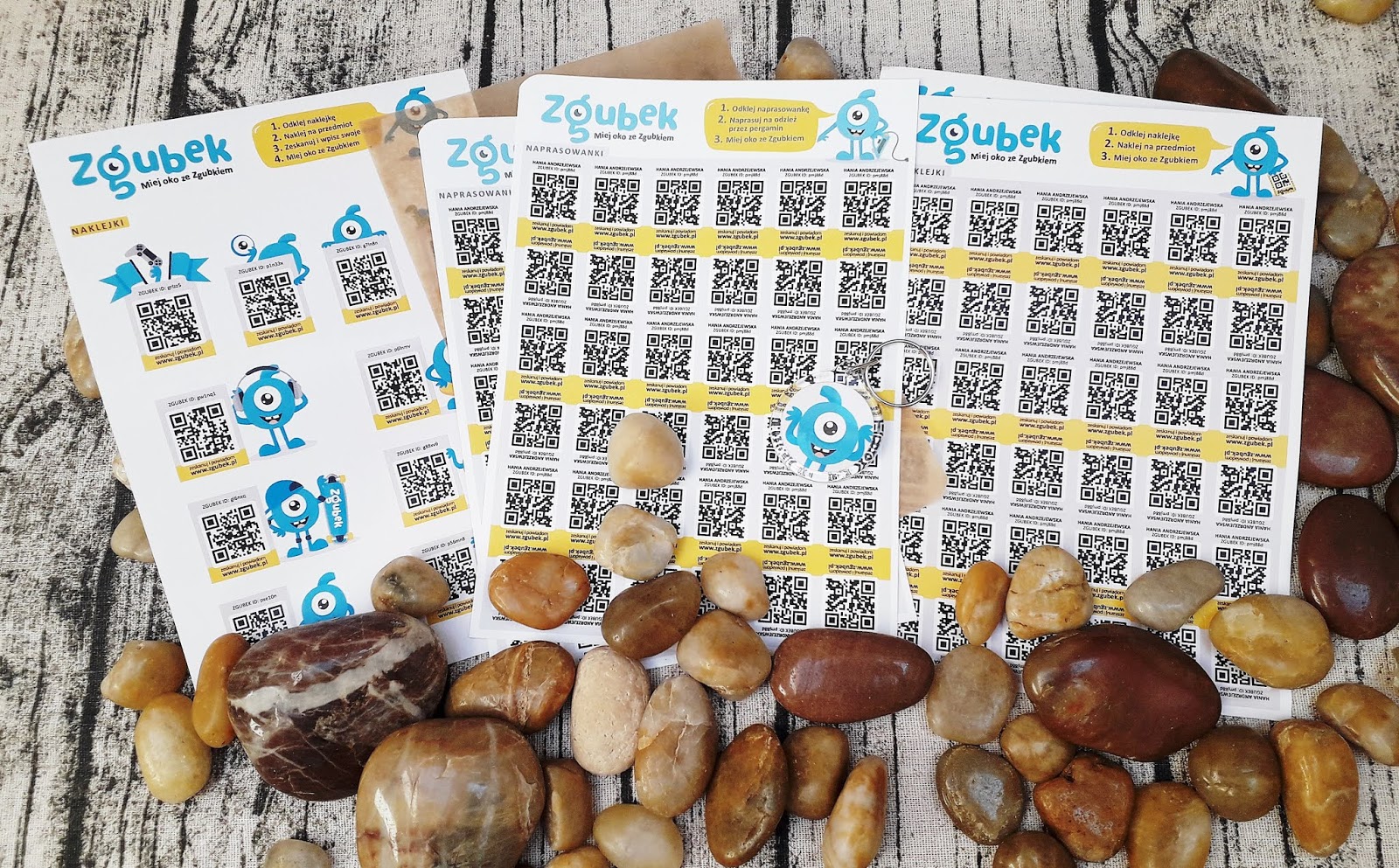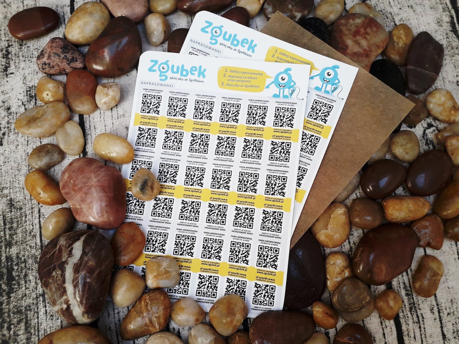 Zgubek to pakiet personalizowanych naprasowywanek i naklejek z Twoimi osobistymi kodami QR. Dzięki nim w prosty i skuteczny sposób można oznaczyć przedmioty należące do dzieci, ale także pozostałych członków rodziny. Wystarczy kilka kroków, aby mieć pewność, że przedmioty są odpowiednio zabezpieczone. Już kilka ruchów żelazkiem, a naprasowanka widnieje na ulubionym kocyku maluszka. Naklejenie naklejek zajmuje jeszcze mniej czasu. Obie te formy wykonane są z najwyższej jakości materiału ze Szwajcarii, dzięki czemu są wyjątkowo trwałe i można je prać w pralce w temperaturze do 40 stopni. Wyglądają bardzo estetyczne. Breloczek jest bardzo lekki. Można go doczepić dosłownie wszędzie, do kluczy, plecaka. Aby Zgubek mógł działać, trzeba go zarejestrować za pomocą skanera. Jest to bardzo proste i zajmuje dosłownie kilka minut. Jeśli dziecku zdarzy się zgubić daną rzecz, wystarczy, że znalazca zeskanuje kod. Do skanowania producent rekomenduje dedykowaną aplikację Zgubek, którą znajdziesz w Google Play i App Store w swoim smartfonie, ale może to być też inna aplikacja, która czyta kody QR. Wtedy za pośrednictwem SMS-a lub maila otrzymamy informację o możliwości jej odbioru.