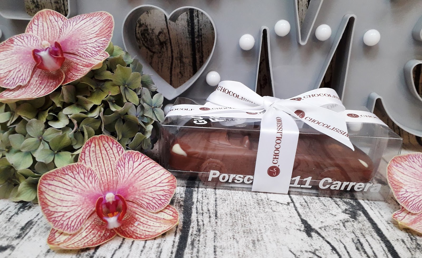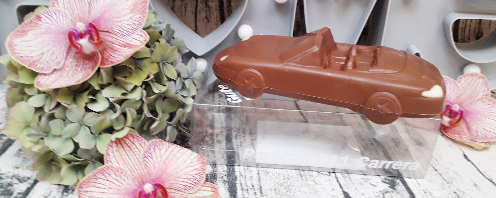 Na stronie Chocolissimo, właśnie z myślą o miłośnikach Porsche 911 Carrera Cabrio, tego szybkiego i pięknego auta, dostępny jest jego czekoladowy odpowiednik. Waży on 125 g i ma wymiary 160x73x47mm. Model został wykonany z czekolady mlecznej z niewielką ilością białej czekolady. Widać, że model stworzony został przez profesjonalistów. Dzięki ogromnej staranności o każdy detal i niesamowitej precyzji samochód wygląda jak prawdziwy. Zauważyć można wszystkie drobne elementy, na przykład skrzynię biegów, podwozie, czy kierownicę. Jestem pewna, że każdy fan motoryzacji będzie zachwycony.