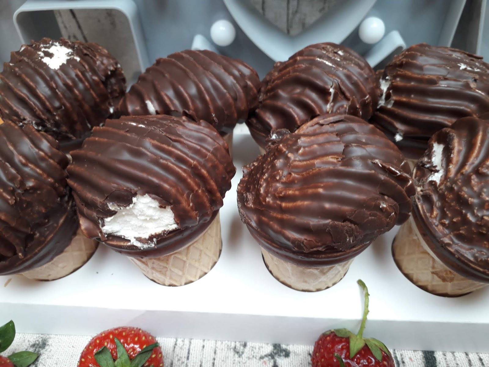 Ciepłe lody należą do takich rzeczy, które bezsprzecznie kojarzą się nam z dzieciństwem. Zawsze po szkole mama, babcia, czy dziadek zabierali nas do piekarni, w której kupowali nam delikatne, ciepłe lody. Postanowiłam zamówić opakowanie z 10 lodami po to, aby każdy mógł poczuć dzięki nim chwilę rozkoszy. Oczywiście są również paczki z większą ilości, jednak jak w życiu, tak i ze słodyczami trzeba znać umiar. Chrupiący wafelek w kształcie kubka wypełniony puszystym piankowym nadzieniem o smaku śmietankowym, zanurzony w polewie czekoladowej sprawiają, że nie jesteśmy w stanie się im oprzeć. Mimo upływu lat zdarza mi się, że mam chęć, aby kupić i spróbować chociaż jednego, jednak to nie jest to co kiedyś. Jednak te murzynki to zupełnie co innego, smakują jak te sprzed lat. Lekka, puszysta pianka rozpływa się w ustach, a w połączeniu ze słodką polewą czekoladową tworzy idealny duet. Masa a śmietankowy smak z nutą czekolady. Kruchy wafelek dopełnia kompozycję smaków. Są idealnie wyważone, nie za słodkie i nie bez wyrazu. Rozkoszując się nimi w rodzinnym gronie, udało mi się na chwile powrócić do dzieciństwa i powspominać dawne dobre czasy. Oczywiście ciepłe lody zrobiły furorę i zanim się obejrzałam, wszystkie zniknęły. W końcu nic w tym dziwnego, skoro są tak przepyszne <3