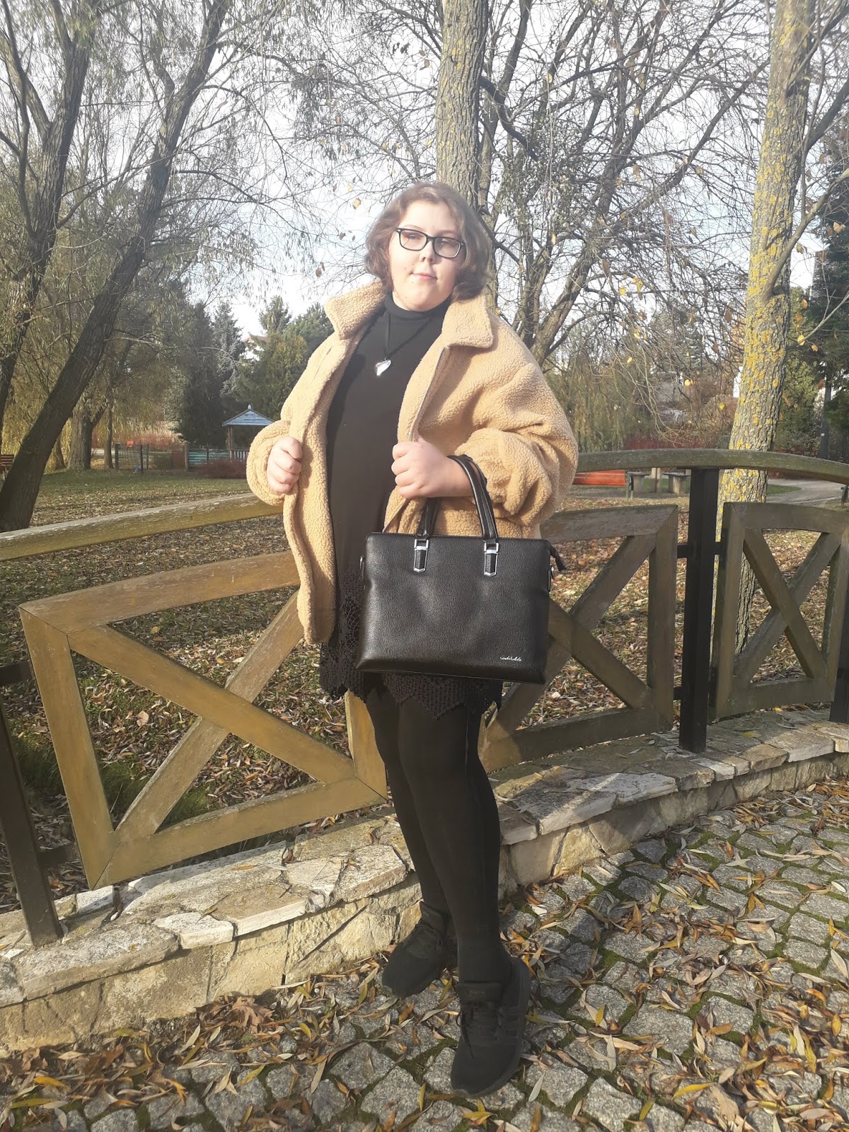 Do stylizacji wykorzystałam ciepły, beżowy polar z Rosegal. Zamówiłam dwa takie same i jestem pewna, że zimą bardzo się przydadzą. Do tego w czerni golf i tunika z KaPhal i legginsy z C&A. Buty czarne, ciepłe szyte na miarę u szewca. Dodatkami jest srebrny naszyjnik z H&M i torebka z Rosegal. Torebki również zamówiłam dwie, czarną i ciemno-niebieską. Do każdej z nich dołączony jest długi pasek, dzięki czemu można ją nosić również na ramieniu. Dla mnie te paski wyglądają jak do torebek sportowych i się nie nadają. Do czarnej dołączony był jeszcze duży portfel w takim samym odcieniu. Na stronie Rosegal znajdziecie wiele ofert sprzedażowych. Każda kobieta może znaleźć coś dla siebie.