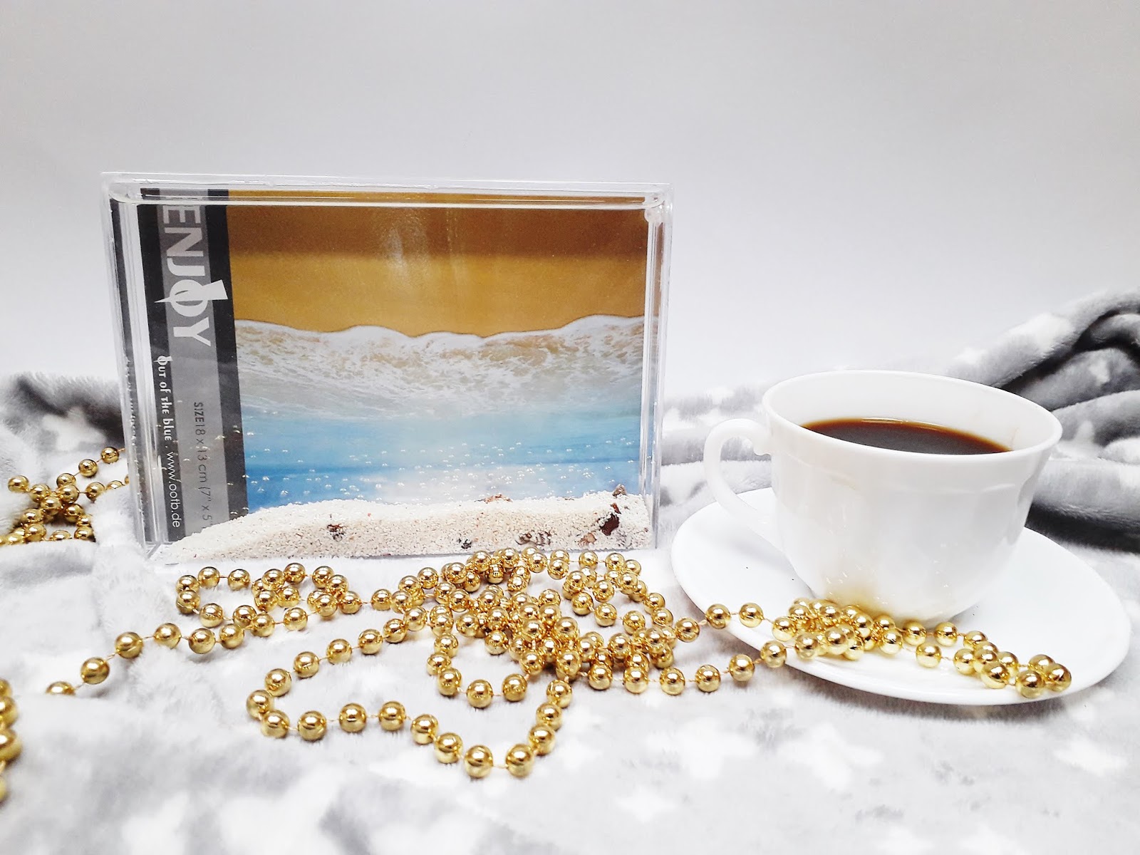 Uwielbiam fotografie, szczególnie te pięknie wyeksponowane. Dla osób, które lubią wieszać ramki, a w nich pamiątkowe zdjęcia, na pewno ucieszą się, jeżeli do prezentów dołączona będzie jeszcze ramka do postawienia. Jednak nie jest ona taka zwykła. W środku niej znajduje się woda, do której dosypano piasek i kilka muszelek. Kiedy włożymy zdjęcie i zaczniemy przekręcać ramkę, co w rezultacie oznacza przemieszczanie się piasku, powstanie ciekawy efekt, który doda zdjęciu niepowtarzalny charakter.