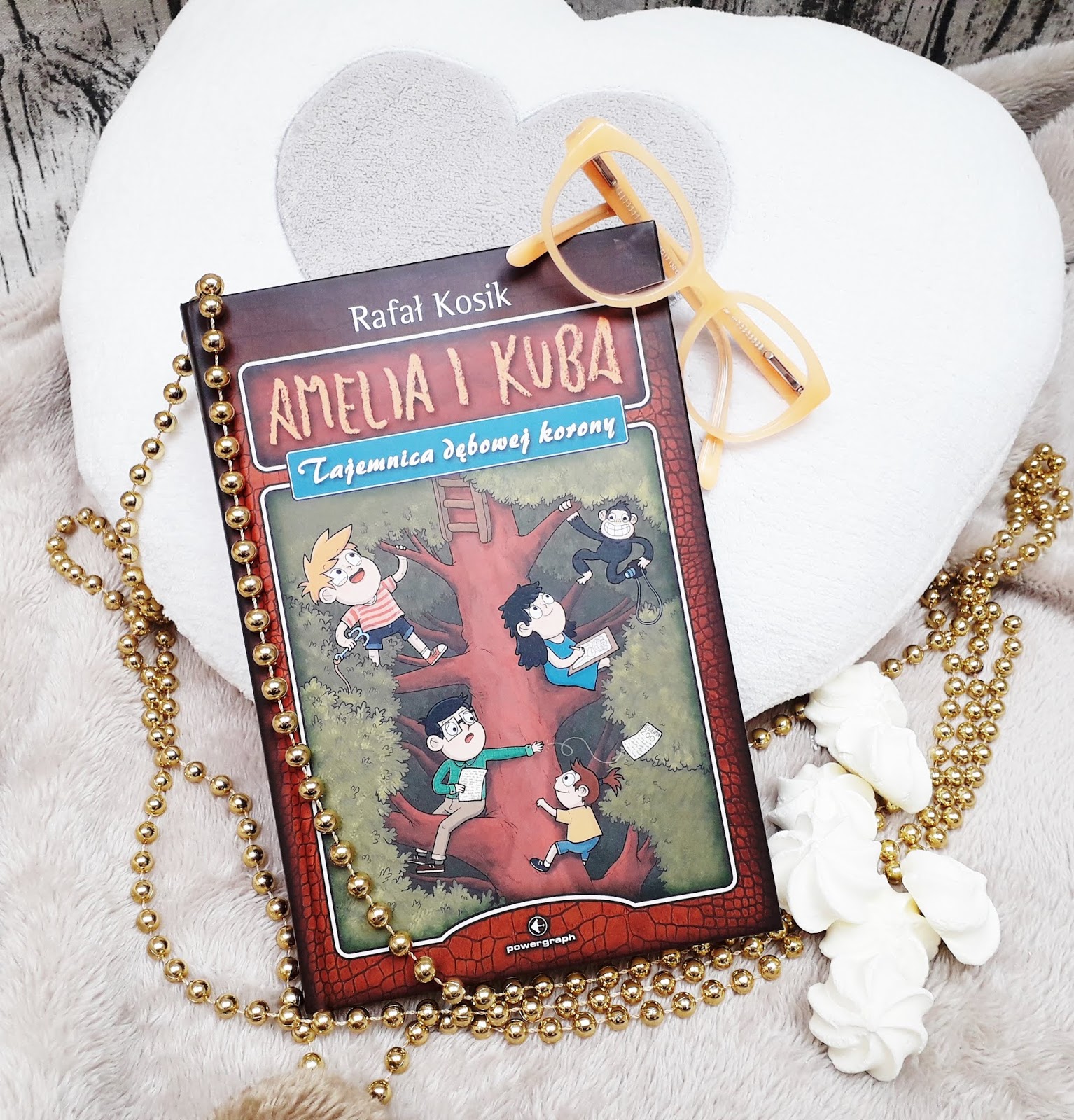 Rafał Kosik zadebiutował literaturą dla dorosłych, jednak z biegiem czasu zajął się również książkami dla najmłodszych czytelników. Aby dziecko zainteresować daną książką musi ona spełnić wiele oczekiwań. Powinna być przede wszystkim ciekawa i intrygująca. Myślę, że z całą pewnością do takich należy „Amelia i Kuba. Tajemnica dębowej korony”. Na samym początku poznajemy głównych bohaterów, czyli dwójkę jedenastolatków i ich rodziców. Każda z tych osób jest ciekawa i wyjątkowa. Amelia, to wrażliwa na piękno przyrody dziewczynka, której pasją jest fotografia. Zawsze ma wiele pomysłów, które wprowadza w życie. Jest wielką marzycielką. Jej brat Albert ma 9 lat i zdiagnozowano u niego zespół Aspergera. Autor zwraca uwagę na to schorzenie i stara się je wyjaśnić. Wiele lat temu dzieci z tą chorobą były napiętnowane i niemal całkowicie wykluczone ze środowiska swoich rówieśników. Dziś, gdy medycyna poszła naprzód i znacznie więcej wiadomo na temat niektórych chorób, znacznie częściej mówi się o tym, jak sobie z tym radzić. Dzieci z zespołem Aspergera w końcu mają szansę na rozwój osobisty i spełnienie swoich marzeń. Po prostu żyć, jak inne dzieci. Nikt nie powinien być odrzucony za to, że jest chory lub po prostu inny. Poznając przygody dzieci możemy dowiedzieć się na czym polega choroba Alberta, jak radzić sobie w świecie dzieci i dorosłych. Poznajemy jego odczucia i spostrzeżenia. Poznajemy również rodzinę Rytlów, Kubę, Mi i ich rodziców. Kuba to chłopiec w wieku 11 lat. Wciąż poszukuje nowych przygód. Konsekwentnie dąży do postawionego celu. Chce rozwiązać tajemnice starego dębu, który rośnie na dziedzińcu apartamentowca zwanego zamkiem. Na trop tej niezwykłej tajemnicy wpada Kuba, kiedy w gorący, wakacyjny dzień na drzewo ucieka kotka sąsiadki Gomułka. Pośród gałęzi dębu chłopiec znajduje rzeczy, które nie powinny znajdować się na drzewie. Jeszcze bardziej zaintrygował go fakt, iż nagle ze starej sosny spadło jabłko.