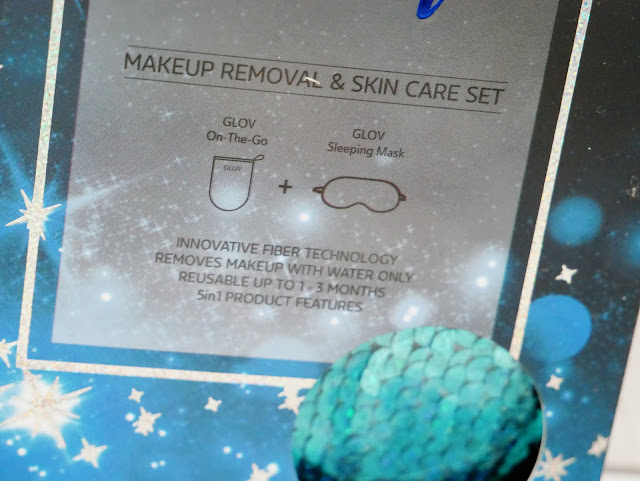 Wyjątkowy zestaw GLOV Sleeping Beauty zawiera rękawiczkę GLOV On-The-Go w kolorze Bouncy Blue do zmywania codziennego makijażu tylko przy użyciu wody oraz cekinową maskę do spania, która skutecznie zasłania światło, dzięki temu jakość snu jest lepsza!