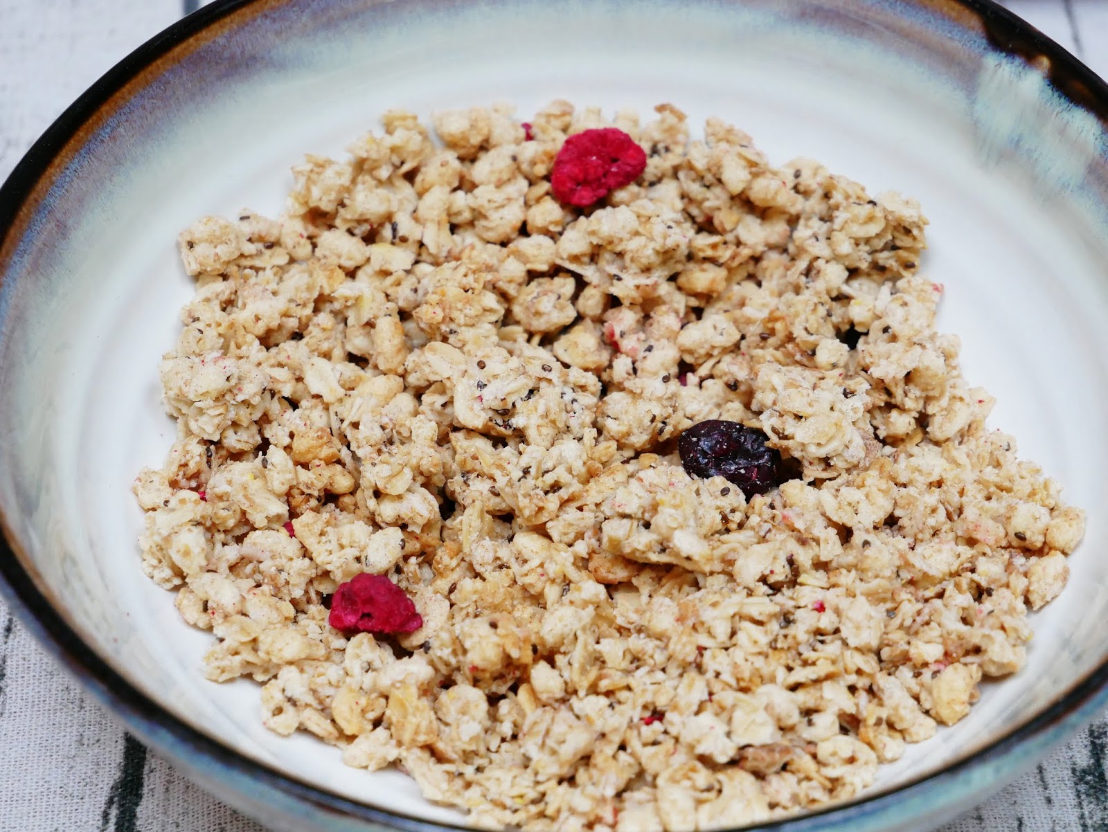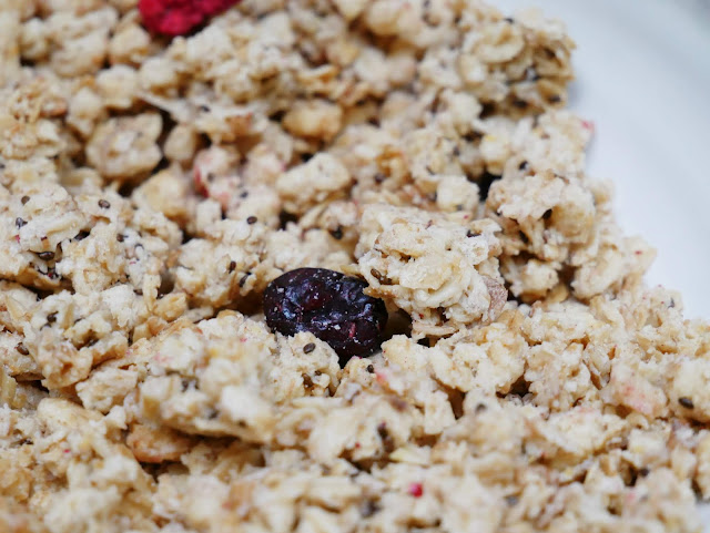 Uwielbiam maliny i borówki, dlatego ten wariant poszedł na pierwszy ogień. Po otworzeniu paczki od razu poczułam słodki, owocowy zapach. Kiedy nasypałam trochę płatków do miski byłam pozytywnie zaskoczona ilością i wielkością dorzuconych tam suszonych owoców. Oprócz malin i jagód znaleźć w nich można również suszoną żurawinę. Crunchy świetnie smakują i są idealnie chrupiące. W połączeniu z suszonymi malinami i jagodami tworzą idealne połączenie. Swobodnie można chrupać je samodzielnie, ale również z mlekiem, czy jogurtem. Są przepyszne <3