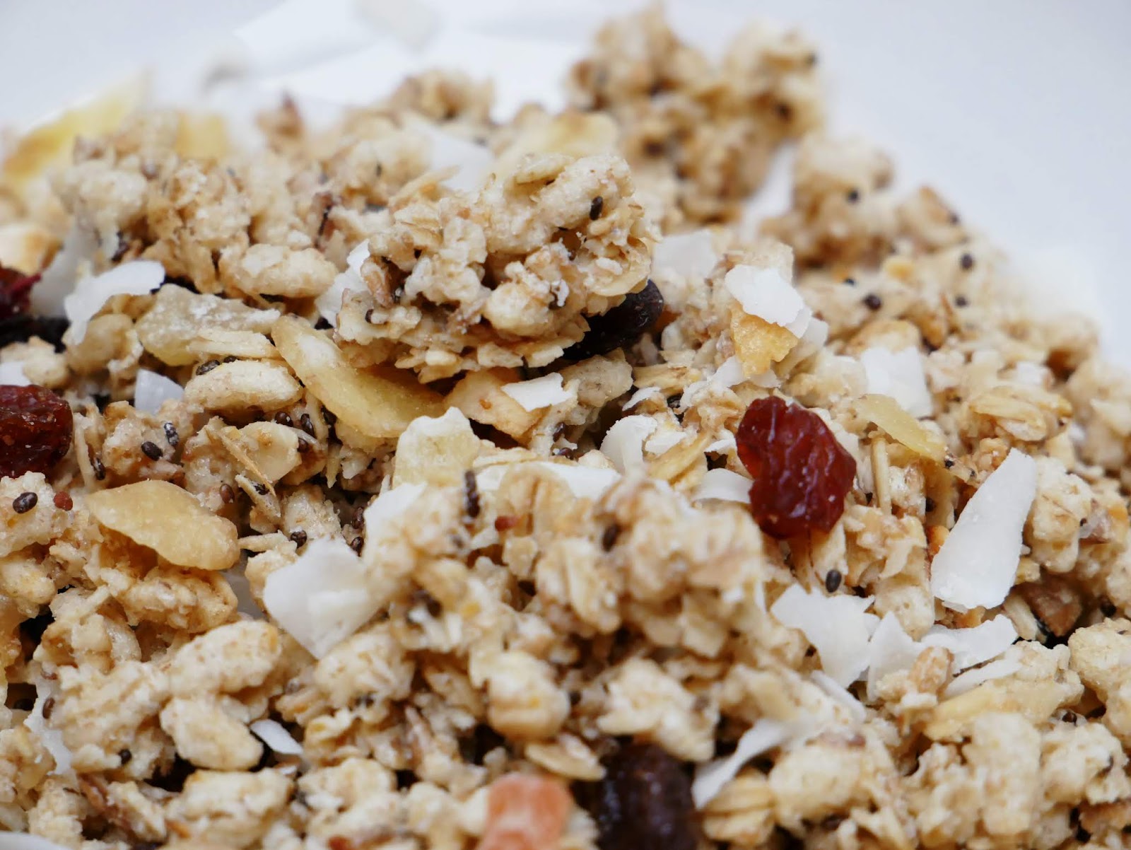 Crunchy z owocami tropikalnymi były dla mnie największym odkryciem. Po ich otworzeniu uniósł się słodki i egzotyczny aromat. W środku rzecz jasna chrupiące płatki i masa różnych dodatków w postaci suszonych i kandyzowanych owoców, a także innych pełnowartościowych dodatków. Znajdziemy w nich się płatki kokosowe, kawałki kandyzowanego ananasa, suszone banany, rodzynki, jabłka, morele, śliwki i papaja. Jest tego bardzo dużo. Nigdy jeszcze nie spotkałam się z płatkami, po brzegi wypełnionymi owocami. Są przepyszne i szczerze mówiąc najczęściej chrupiemy je solo, podczas zabawy i oglądania telewizji. Crunchy z owocami tropikalnymi bardzo nam zasmakowały <3