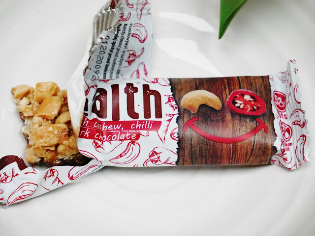 Nie ukrywam, że ten batonik bardzo mnie zaintrygował. Nie do końca byłam przekonana do tego połączenia, jednak kiedy odważyłam się spróbować, okazało się, że oba te składniki, czyli chili i nerkowce z dodatkiem czekolady wyśmienicie smakują. Oczywiście ten wariant jest znacznie pikantniejszy i mnie osobiście nie powalił na kolana, jednak osoby, które na co dzień używają tej przyprawy, na pewno przypadnie im do gustu ten oryginalny smak. Nerkowce zawierają dużo magnezu i wapnia, a także są świetnym elementem diety, który dodatkowo wspomaga odchudzanie. Chili pobudza układ trawienny i zmniejsza głód. Na pewno warto je wypróbować, jednak nie każdemu mogą one przypaść do gustu.
