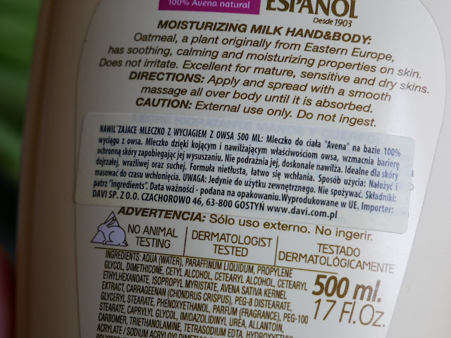 Wraz z biegiem lat odkrywane są różne zastosowania roślin, które początkowo były mało wartościowe. Należy do nich między innymi owies, który obecnie jest nie tylko przeznaczany na paszę dla zwierząt, ale także wykorzystuje się jego liczne właściwości w lecznictwie i kosmetyce. Poszczególne części tej rośliny można wykorzystać w inny sposób. Nieprawdopodobne jest to, ile może dać tak nieznacząca dla wielu osób roślina. Jak pewnie wiecie interesuję się kosmetykami naturalnymi, a owies coraz częściej stanowi jeden z ich głównych elementów. Nigdy nie stosowałam preparatów z tym składnikiem, dlatego bez chwili namysłu postanowiłam poszukać czegoś godnego uwagi. Nie było to łatwe, ale w końcu trafiłam na nawilżające mleczko z wyciągiem z owsa z INSTITUTO ESPAÑOL AVENA.