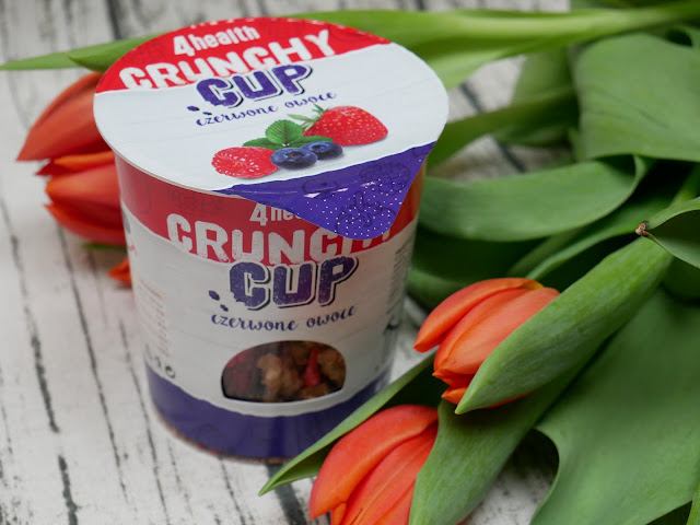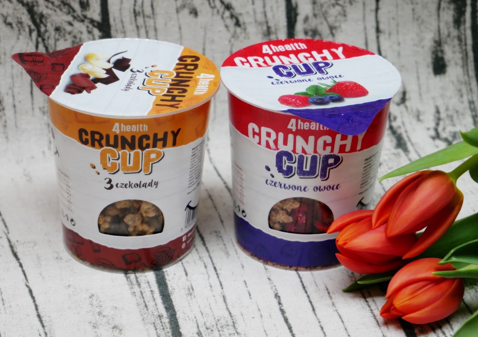 Myślę, że nie tylko u mnie, szczególnie rano czas jest towarem deficytowym. Często, kiedy się śpieszę, nie mam nawet chwili, aby zjeść śniadanie. Wciąż jest mnóstwo to zrobienia, a czasu co raz mniej. Co prawda takie sytuacje zdarzają się rzadko, jednak dla mnie są dosyć stresujące. Do tego jeszcze przez cały ten rozgardiasz zapominam o śniadaniu, które przecież daje mi energię na cały dzień. W końcu powiedziała sobie dość, trzeba coś z ty zrobić. Na szczęście po pewny czasie trafiła w sklepie na Crunchy Cup od 4health. Do wyboru są dwa warianty – czerwone owoce i 3 rodzaje czekolady(biała, mleczna, gorzka). Postanowiła wypróbować oba i sprawdzić, który z nich będzie najlepszy.