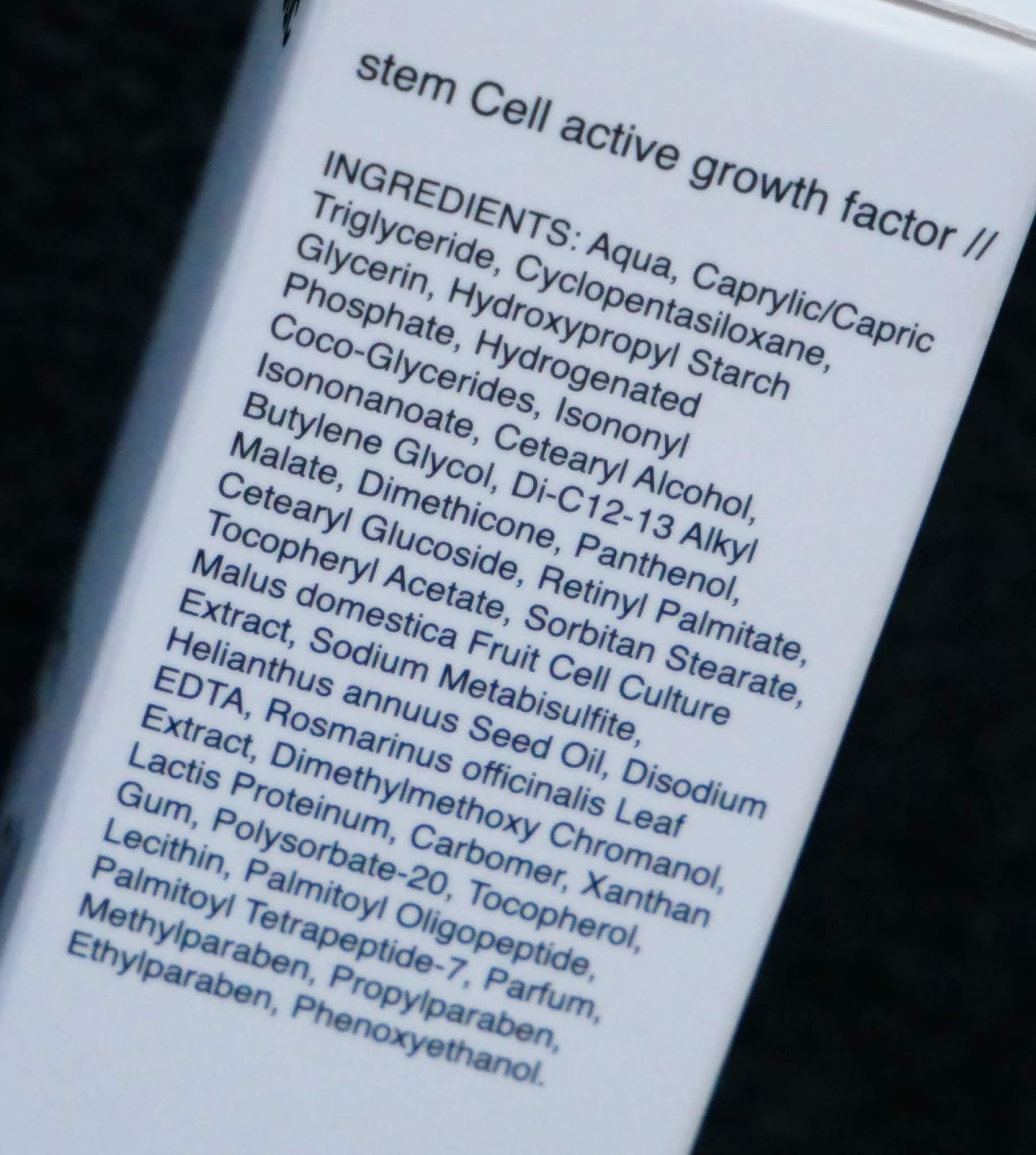 Składniki aktywne: Komórki macierzyste, Czynniki wzrostu, Dexpantenol, Matrixyl, Lipochroman-6 (antyoksydant).