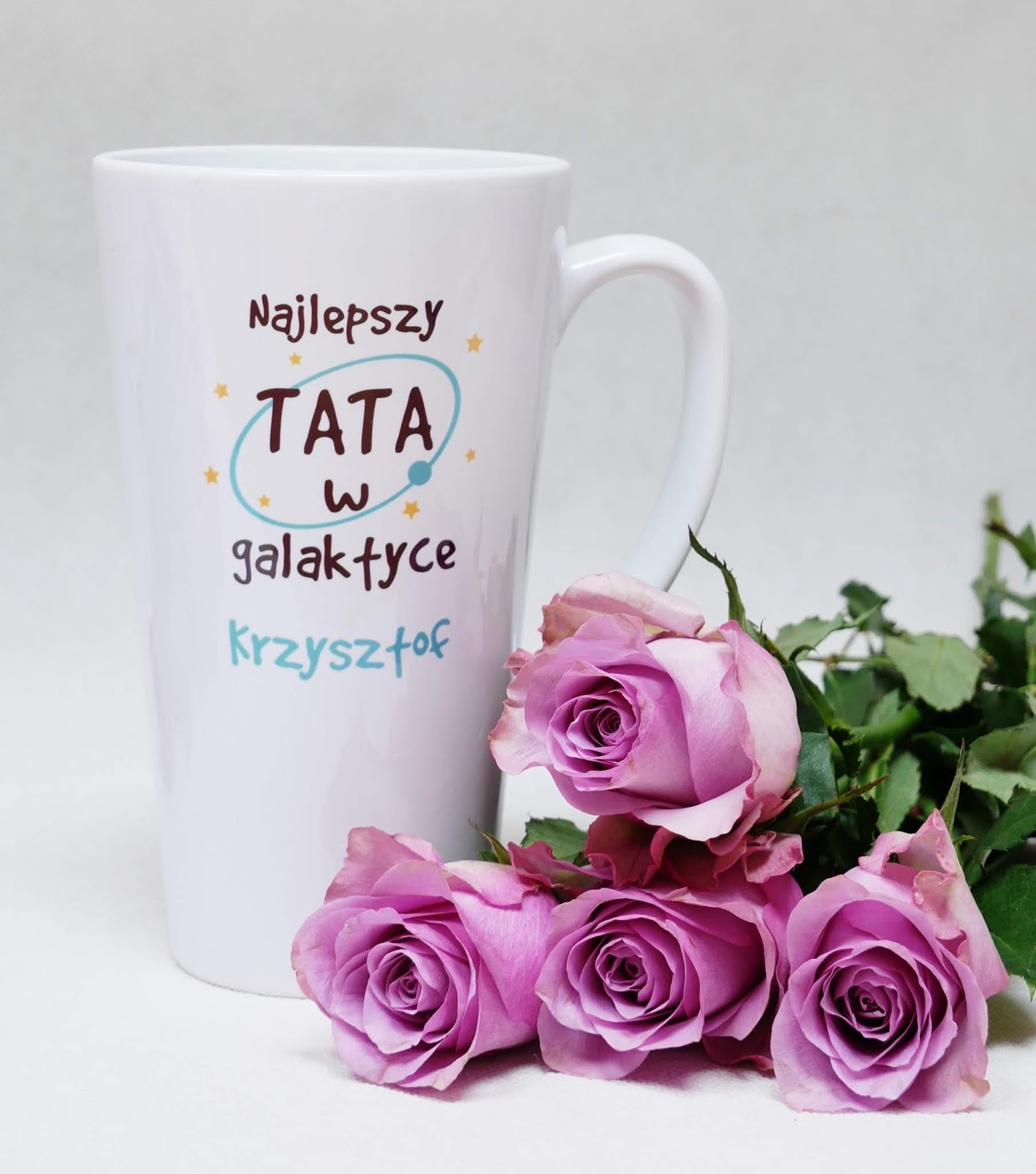 Tata uwielbia herbatę i często po nią sięga. Nie wyobraża sobie początku dnia bez kubka herbaty. Wybiera różne gatunki, więc potrafi rozkoszować się nią przez cały dzień. Zawsze, kiedy idzie do restauracji, czy w gości również prosi herbatę. Najczęściej parzy ją w pierwszym lepszym kubku, aby tylko wziąć chociaż kilka łyków. Pomyślałam, że mogłabym jeszcze bardziej uprzyjemnić tacie delektowanie się tym trunkiem i zamówiłam przepiękny, personalizowany kubek Latte o pojemności 500 ml, ze starannie wykonanym napisem „Najlepszy TATA w galaktyce Krzysztof”. To był strzał w dziesiątkę! Kubek jest dosyć wysoki, smukły i rozszerza się ku górze. Do wyboru są liczne różnobarwne grafiki oraz trzy różne wielkości (300 ml, 400 ml, 500 ml), jednak ostatecznie stwierdziłam, że taki kubeczek będzie najodpowiedniejszy. W ten sposób Tata będzie mógł długo napawać się smakiem ulubionej herbaty. Kubeczek wykonano z wysokiej jakości, grubej ceramiki, dzięki czemu jest bardzo trwały i odporny na przypadkowe uderzenia. Z obu stron umieszczony został trwały nadruk, który jest odporny na zarysowania i inne uszkodzenia. Bez obaw może być myty w zmywarce, w trybach o niskiej temperaturze, nie martwiąc się przy tym, że straci swoje kolory. Mimo dużych rozmiarów jest bardzo poręczny i dobrze układa się w dłoni. Według mnie kubek jest po prostu rewelacyjny! Mam nadzieję, że Tata ucieszy się z takiego prezentu. W końcu to niezwykle praktyczny i użyteczny podarunek. Będzie mógł sączyć ulubiony napój, oglądając telewizję, czy odpoczywając w ogrodzie. Taki niezwykły drobiazg na pewno sprawi mu wielką radość i przywoła wiele pięknych wspomnień. W końcu herbata w takim wyjątkowym kubku smakuje najlepiej!