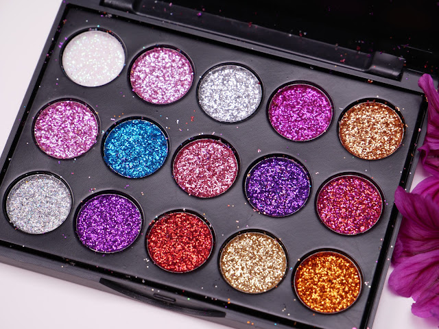 Nie wiem, czy wiecie, ale jestem maniaczką paletek do makijażu. Mam ich już dosyć sporo, ale mimo to wciąż rozglądam się za nowymi. Pomyślałam, że warto by było urozmaicić kolekcję brokatowymi cieniami. Myślę, że to jedna z lepszych paletek, ponieważ posiada bardzo ładne, dobrze wykonane opakowanie, a poza tym dodatkowo zapakowana jest w kartonik. Po jej otwarciu ukazują się przepiękne brokatowe cienie w 15 różnych kolorach. Cienie są dosyć miękkie i plastyczne. Łatwo się je nakłada, jednak osobiście zalecałabym aplikację na mokry podkład lub klej do brokatu. Makijaż z ich wykorzystaniem będzie wyglądać niesamowicie. Nigdy bym nie pomyślała, że można kupić taką paletkę dosłownie za 5 $. Rewelacja <3