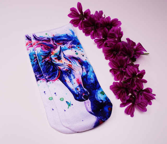 Już kilka miesięcy temu wspominałam Wam, że Hania ciągle gubi skarpetki. Na szczęście kilka zakupionych par długo jej posłużyło. Jednak ostatnio urosła jej stópka i znowu zrobiło się krucho. Poza tym planowany jest wyjazd i już dużo wcześniej zaczęłyśmy przygotowania. Dlatego jak tylko zobaczyłam te śliczne, bawełniane skarpetki z jednorożcami, wiedziałam, że będzie nimi zachwycona. Nie pomyliłam się. Skarpetki wyglądają rewelacyjnie! Nadruk jest bardzo starannie wykonany. Ilość szczegółów i liczne kolory prezentują się niesamowicie. Według mnie to najlepsze skarpetki, jakie do tej pory udało mi się zamówić w sklepach online.