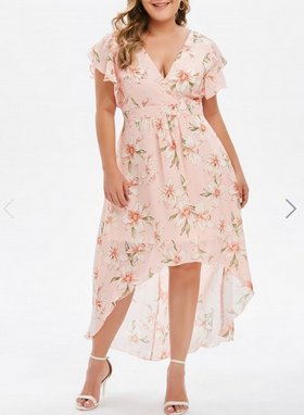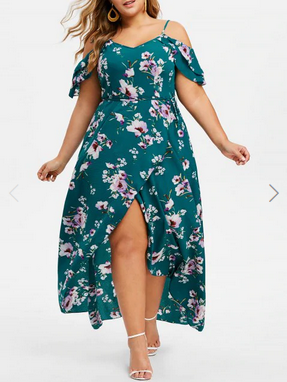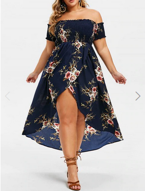 Plus SizeOff The Shoulder Floral Print High Low Maxi Dress