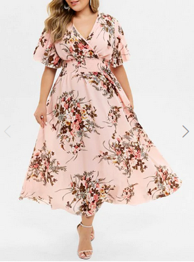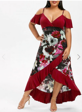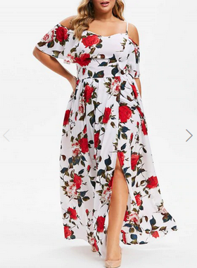 Plus Size Cold Shoulder Floral Maxi Flowing Dress