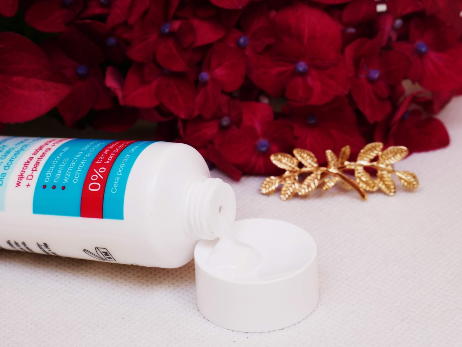 Krem szybko się wchłania, jednak trzeba chwilę poczekać do całkowitego wsiąknięcia. Doskonale nawilża, odżywia i kondycjonuje skórę. Odbudowuje naturalna barierę hydrolipidową, a także naprawia i odbudowuje uszkodzony naskórek. Łagodzi podrażnienia i zaczerwienienia oraz stany zapalne. Krem sprawia, ze skóra jest miękka, gładka i miła w dotyku, a do tego doskonale zregenerowana. Kosmetyk może być stosowany do pielęgnacji twarzy, ciała oraz dłoni. W okresie jesienno-zimowym może być jedynym ratunkiem dla przesuszonej i wrażliwej skóry. Obecnie aplikuję go na twarz, a czasami także na dłonie i jestem bardzo zadowolona z rezultatów. Koniec z wysuszonymi i spękanymi dłońmi podczas mrozów. Nie pamiętam kiedy moje dłonie były w tak świetnej kondycji. Na zimę będzie idealny!