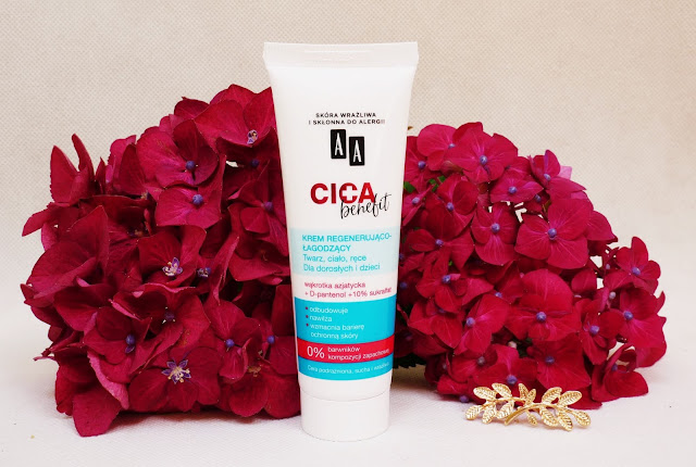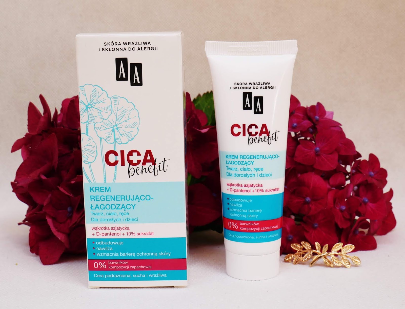 „AA CICA BENEFIT to kompleksowa, linia kosmetyków stworzona w celu regeneracji skóry wrażliwej, suchej i podrażnionej, której bariera ochronna została naruszona. Bogate receptury oparte na dobroczynnym działaniu wąkrótki azjatyckiej Centella Asiatica skutecznie wzmacniają strukturę naskórka, przywracając skórze wysoki poziom nawilżenia.”