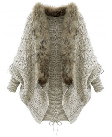 Faux Fur Trim Lace Up Batwing Sleeve Cardigan