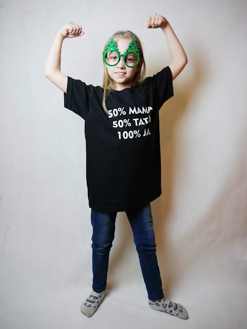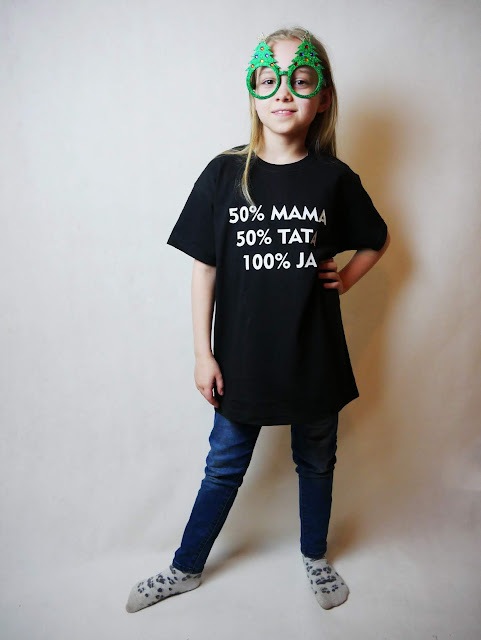 My zdecydowaliśmy się na zwykły, czarny T-shirt z białym nadrukiem. Umieściliśmy na nim następujący tekst „50% MAMA 50% TATA 100% JA”. Kiedy Hania po raz pierwszy zobaczyła tę koszulkę, była po prostu zachwycona, podobnie z resztą jak my wszyscy. T-shirt wykonany jest w 100% z najwyższej jakości bawełny. Posiada trwały, bardzo starannie i szczegółowo wykonany nadruk. Koszulka jest lekka i przewiewna. Idealna na co dzień dla tak aktywnych dzieci, jak Hania. Jest dobra gatunkowo, więc komfort i wygoda noszenia jest gwarantowany. Jestem przekonana, że tak doskonałą jakość docenią nie tylko dorośli, ale również dzieci. W końcu to one najlepiej wiedzą, czego oczekują.