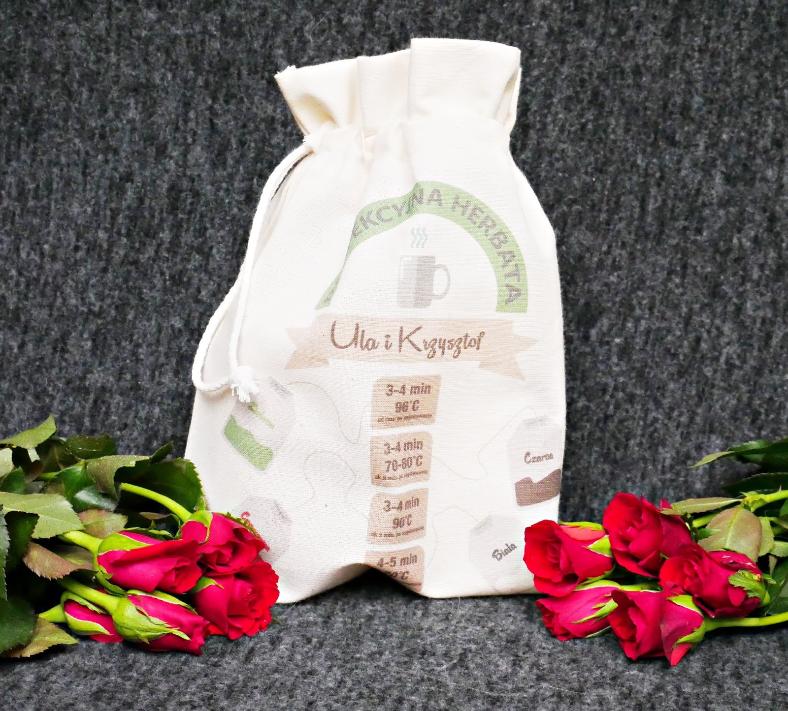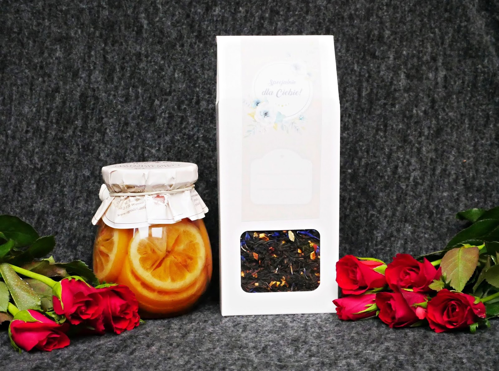 Szukając idealnego prezentu, zawsze staram się sprawić radość obdarowywanej osobie. Pomyślałam, że sama patera to skromny upominek i warto by było zamówić coś jeszcze. Kiedy już miałam przechodzić do kolejnej kategorii, wpadł mi w oko zestaw prezentowy z aromatyczną herbatą. Byłam pewna, że doskonale dopełni mój podarunek na rocznicę ślubu moich rodziców. Herbaciany zestaw zapakowany jest w ozdobny woreczek z personalizowanym nadrukiem. Znajduje się na nim imiona rodziców oraz wskazówki dotyczące prawidłowego parzenia herbaty. Wygląda przepięknie i z całą pewnością nadaje całemu zestawowi wyjątkowy charakter, jednak to jego zawartość jest najważniejsza. Zestaw składa się z aromatycznej Herbaty Madagaskar oraz syropu z dodatkiem cytryny i żurawiny. Tata uwielbia herbatę, a jej parzenie jest niezwykłym rytuałem. Herbata Madagaskar to kompozycja delikatnej, czarnej herbaty z soczystymi truskawkami oraz orzeźwiającą skórką pomarańczy. Całość otulają pachnące płatki bławatka. Herbata już z daleka kusi swoim cudownym aromatem. Wystarczy wziąć jeden łyk, a nie można się jej oprzeć. Jest po prostu przepyszna. Z każdym kolejnym łykiem smakuje inaczej i pobudza coraz to dalsze kubki smakowe. Jestem przekonana, że rodzice będą zachwyceni tą niezwykłą herbatą i będą się nią rozkoszować każdego dnia.