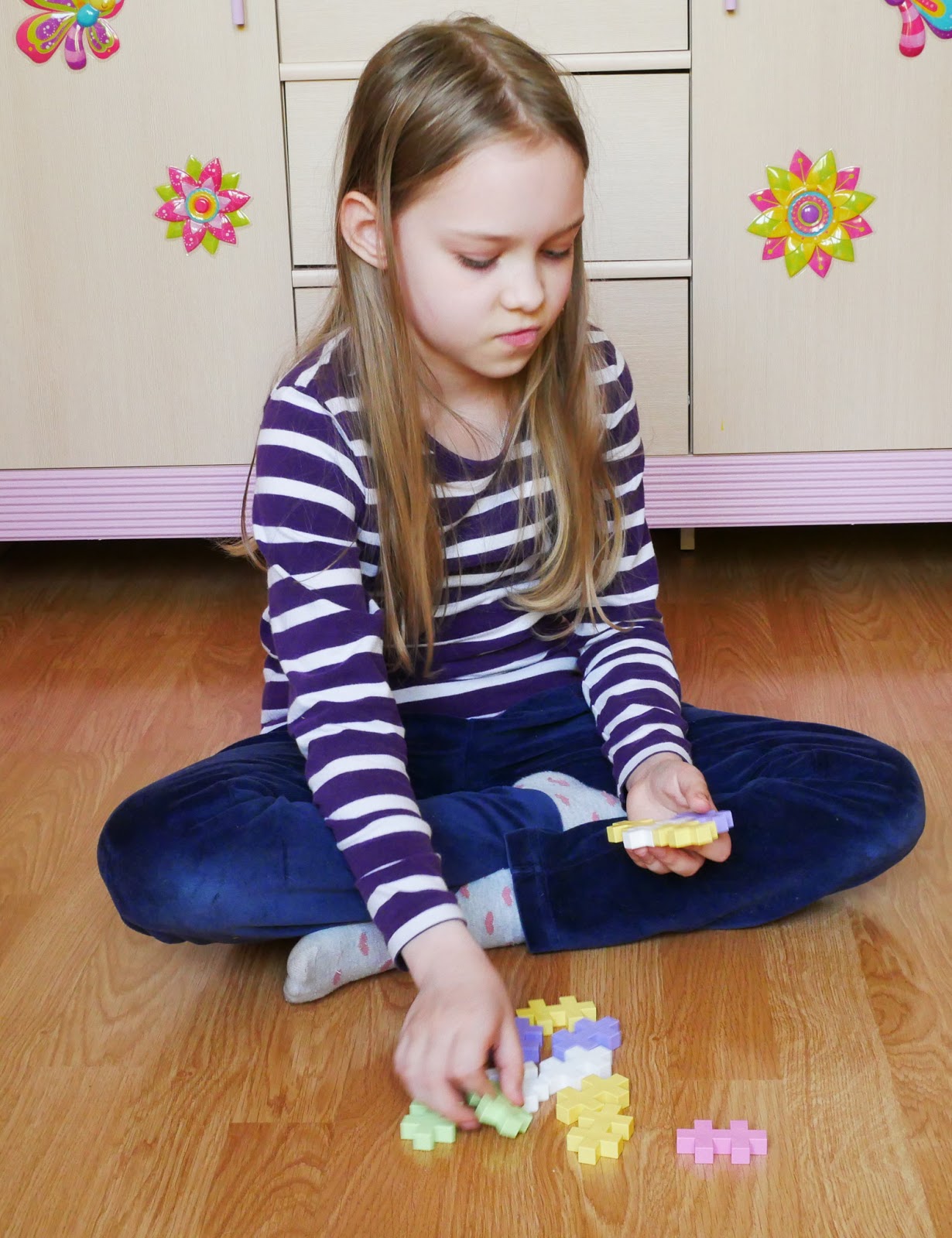 Ten zestaw klocków jest już raczej dla starszych dzieci. Z drobnych elementów można stworzyć przeróżne budowle. Tutaj zainteresowanie klockami na pewno jest większe. Potrafią wciągnąć na wiele godzin. Można zbudować z nich różne postacie, zamek, czy chociażby diadem dla księżniczki. W tym przypadku możliwości są nieograniczone. Hania uwielbia z nich budować. Są świetne!