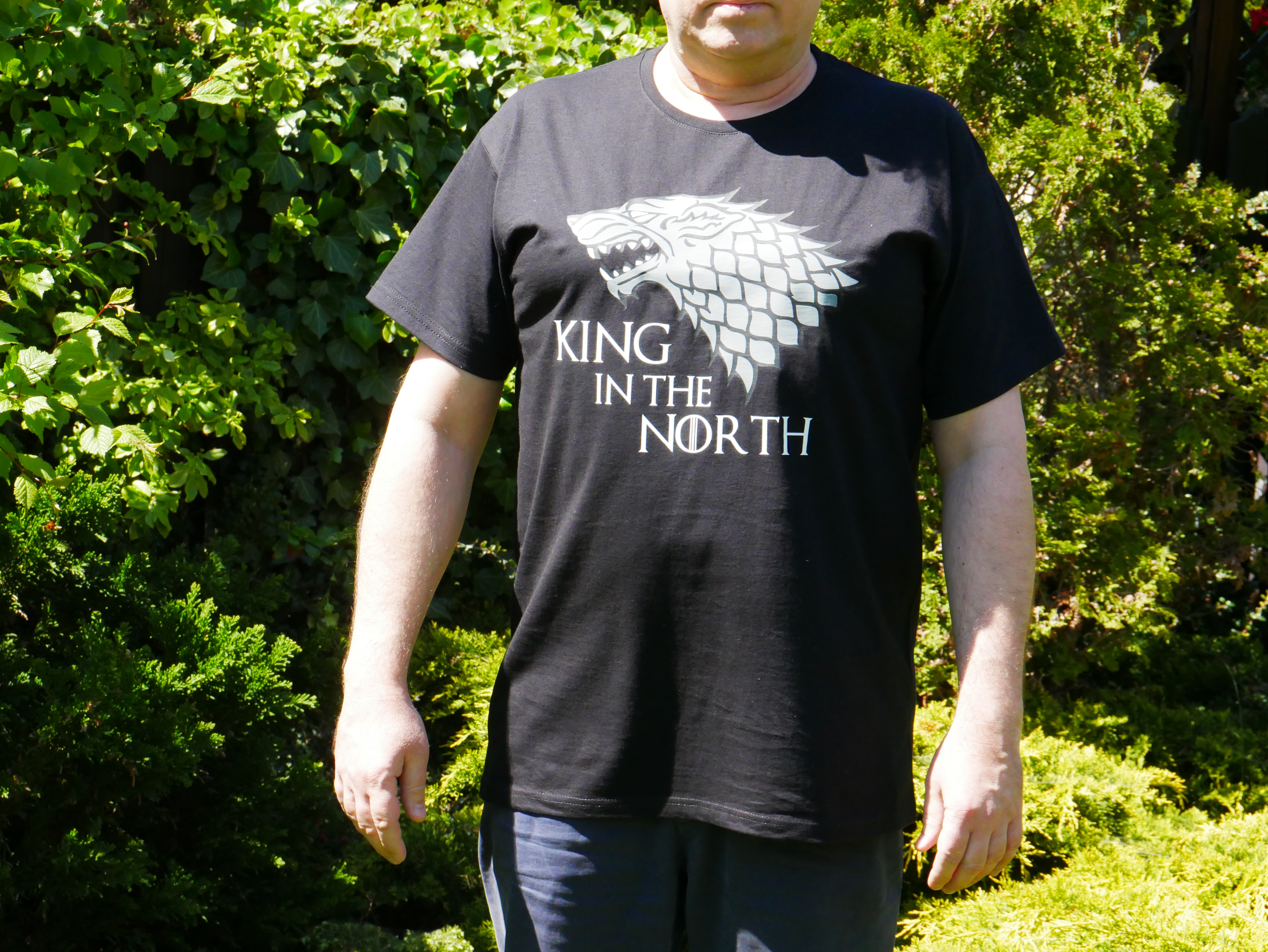 Na stronie sferakoszulek.pl dostępne są różne koszulki z niepowtarzalnymi nadrukami. Nie brakuje tam propozycji dla wielbicieli filmów, czy seriali, ale także związanych z hobby, czy konkretną okazją. Możecie tam znaleźć nawet koszulki z memami. Jest tam masa propozycji zarówno dla kobiet jak i dla mężczyzn. Podczas składania zamówienia wybieracie jaki wariant Was interesuje, rozmiar koszulki oraz jej kolorystykę. Wydaje się proste, ale wybór jest tak duży, że naprawdę wybrać tę odpowiednią. Ja jak już wcześniej wspomniałam zdecydowałam się na koszulkę z serialu „Gra o tron”. Było kilka różnych modeli, jednak ten z napisem „ KING IN THE NORTH” spodobał mi się najbardziej. Wybrałam odpowiedni rozmiar oraz czarno-białą wersję kolorystyczną. Gdy ją oglądałam na stronie, wyglądała genialnie! Miałam nadzieję, że tata również będzie zachwycony. I się nie pomyliłam!