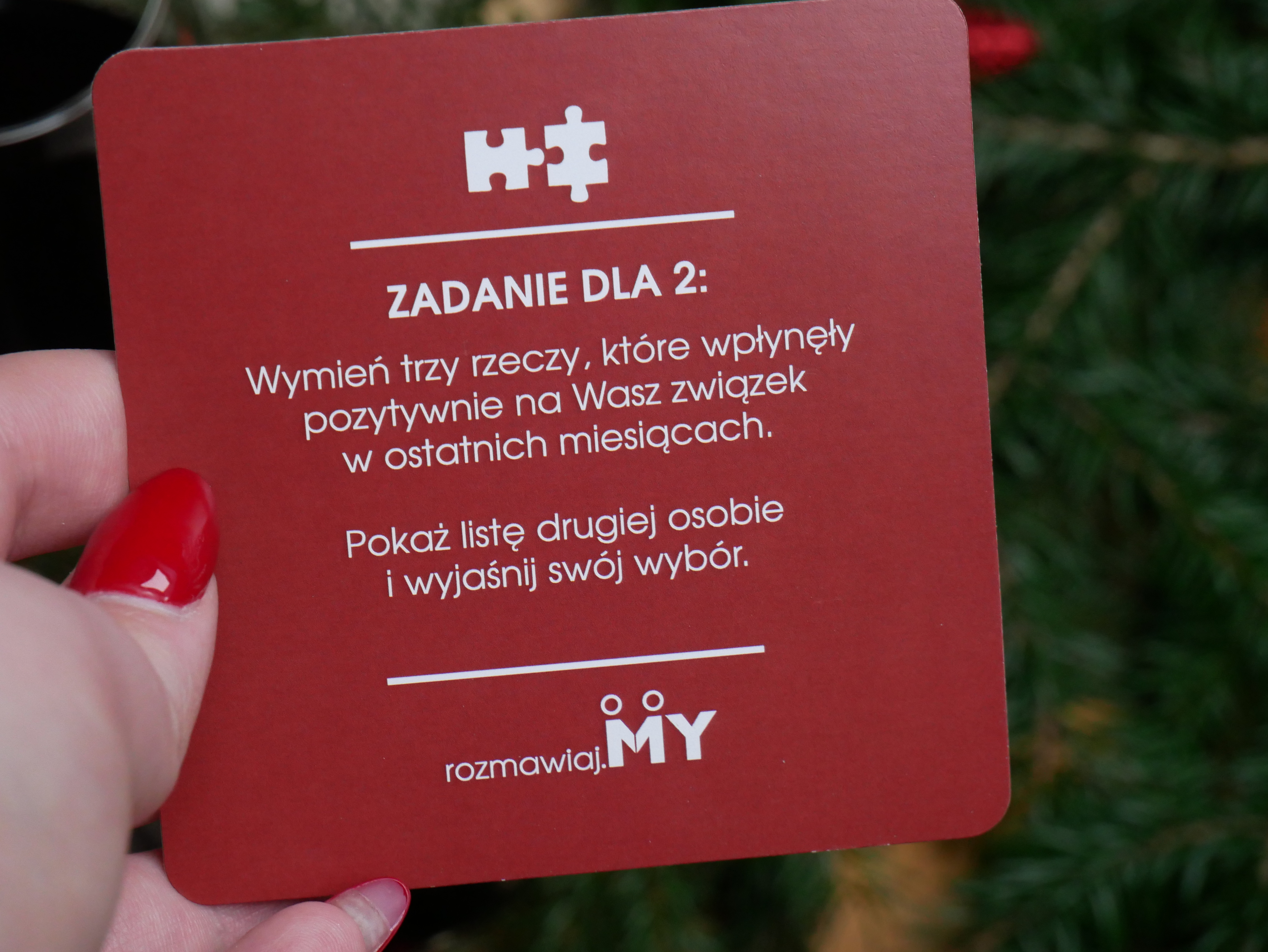 Do świąt Bożego Narodzenia zostało już niewiele czasu, dlatego to już ostatni moment, aby pomyśleć o świątecznych prezentach. W tej całej świątecznej gorączce nie można zapomnieć o najważniejszej dla nas osobie jaką jest nasz partner lub partnerka. To właśnie z nimi dzielimy te lepsze i gorsze chwile, to właśnie oni wspierają nas podczas codziennych wyzwań i są dla nas oparciem, bez względu na sytuację zawsze możemy na nich liczyć. Wiem jednak, że nawet w najlepszym związku bywają różnice zdań, kłótnie i nieporozumienia. Rzecz jasna nie mówię o tym bez powodu. Niedawno miała swoją premierę niezwykła gra karciana dla par Rozmawiaj.MY. Chciałabym Wam o niej powiedzieć nieco więcej, ponieważ uważam, że to idealny prezent gwiazdkowy dla drugiej połówki. W ten sposób możemy pokazać, jak bardzo nam na niej zależy i każdego dnia dążyć do lepszej wersji samych siebie. Jeżeli jesteście na czym polega gra i czy faktycznie warto się jej przyjrzeć, to zapraszam do dalszej części wpisu!