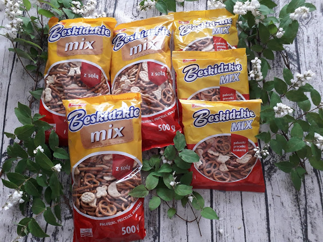 Mieszanki to jedna z moich ulubionych form przekąsek. Owszem, może nie różni się od paluszków, precelków, czy krakersów pakowanych osobno, jednak znajduje się tutaj kilka rodzajów przekąsek, dzięki czemu na pewno któraś z nich trafi w gust pozostałych osób. Poza tym jest to tańsze i wygodniejsze rozwiązanie. Jeżeli chodzi o mix z firmy Beskidzkie, to zawartość każdego rodzaju jest zbilansowany. Do wyboru mamy mniejsze i większe paczki, wiec możemy wybrać odpowiednią, w zależności od liczby osób, które będą się wspólnie bawić. W tym przypadku również cały ten zestaw smakuje doskonale. Można do woli podjadać i wspólnie odliczać czas do Nowego Roku.