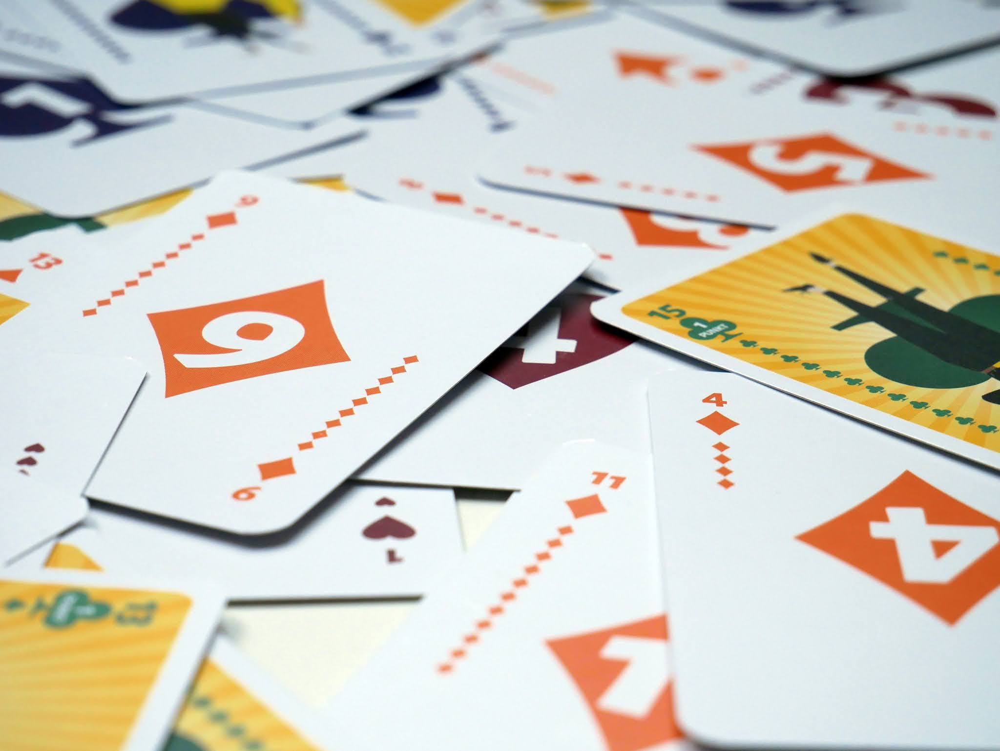 W grze chodzi o to, by jak najszybciej pozbyć się wszystkich kart. W pudełku znajduje się talia przypominająca tradycyjną talię kart. Tutaj jednak nie mamy figur, a same numery od 1 do 15. Powtarza się jednak standardowy typ kart: karo, trefl, pik i kier. Numery na kartach są duże i utrzymane w minimalistycznej formie, co w szybkim tempie gry jest ważne!