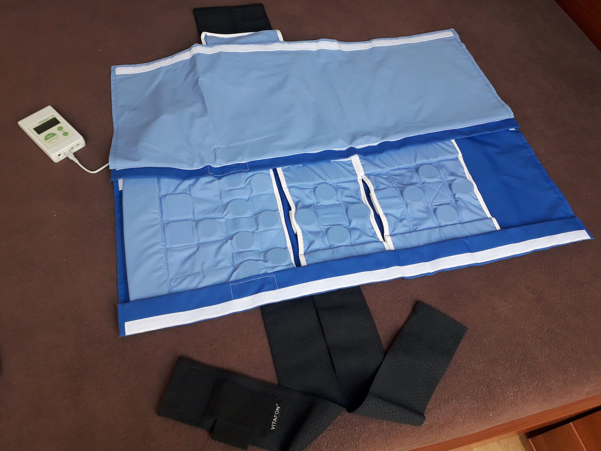 Zestaw składa się z materaca oraz modułu sterującego. By go nabyć, wystarczy kupić podstawowy zestaw Vitafon. Odpowiednio rozmieszczone wibrofony działają kompleksowo, dzięki czemu nie musimy ich przesuwać ani odpowiednio się do nich ustawiać. Najlepszym rozwiązaniem jest korzystanie z materaca na leżąco. Jego górną część umieszczamy na odcinku szyjnym, a fragmenty przeznaczone do wsparcia nerek i wątroby kładziemy na brzuchu. Materac posiada rzepy, które pozwalają prawidłowo założyć i umocować urządzenie.