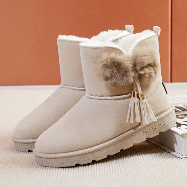 Ostatni model butów jesienno-zimowych, który przykuł moją uwagę przypomina trochę ciepłe bambosze. Buty mają piękny kolor i niebagatelny wygląd. W środku wyłożone są miękkim futerkiem, które doskonale zatrzymuje ciepło. Gruba powierzchnia z tak zwanym traktorem ułatwia przemieszczanie się po śniegu, ponieważ but się nie zapada. Bardzo podoba mi się ten model, a futerko oraz materiałowymi elementami (frędzlami) dodają im stylu i oryginalności.